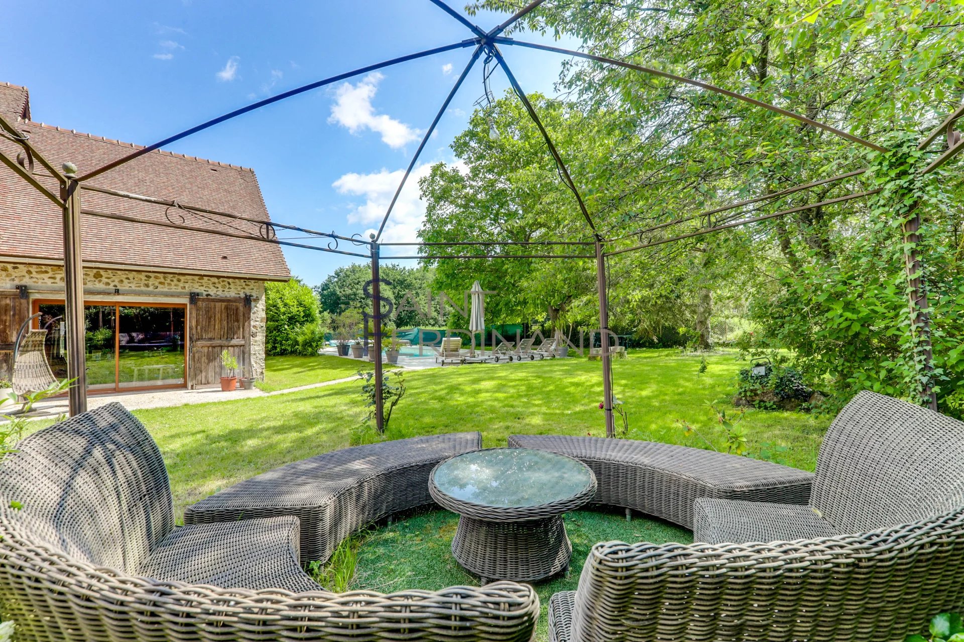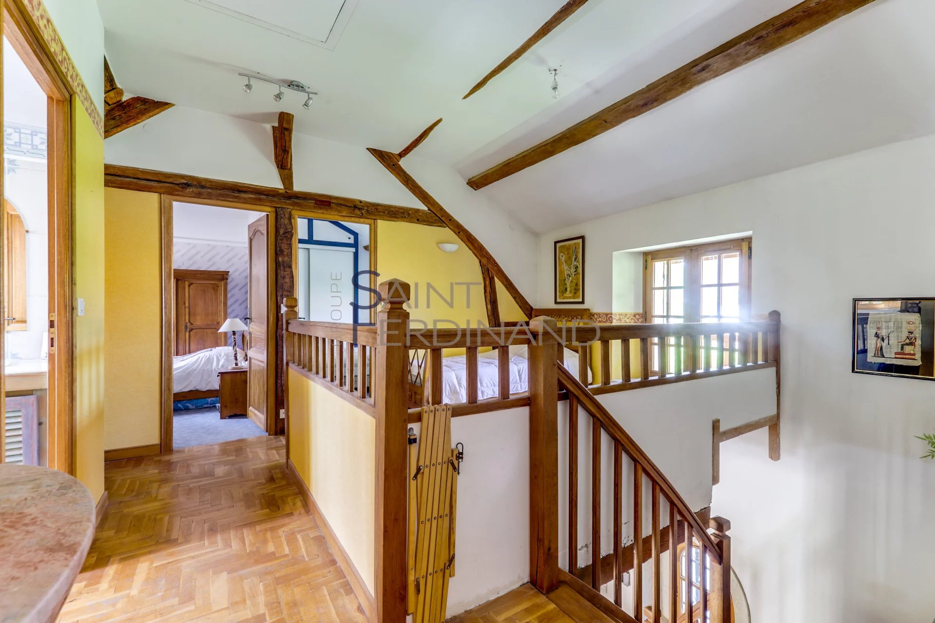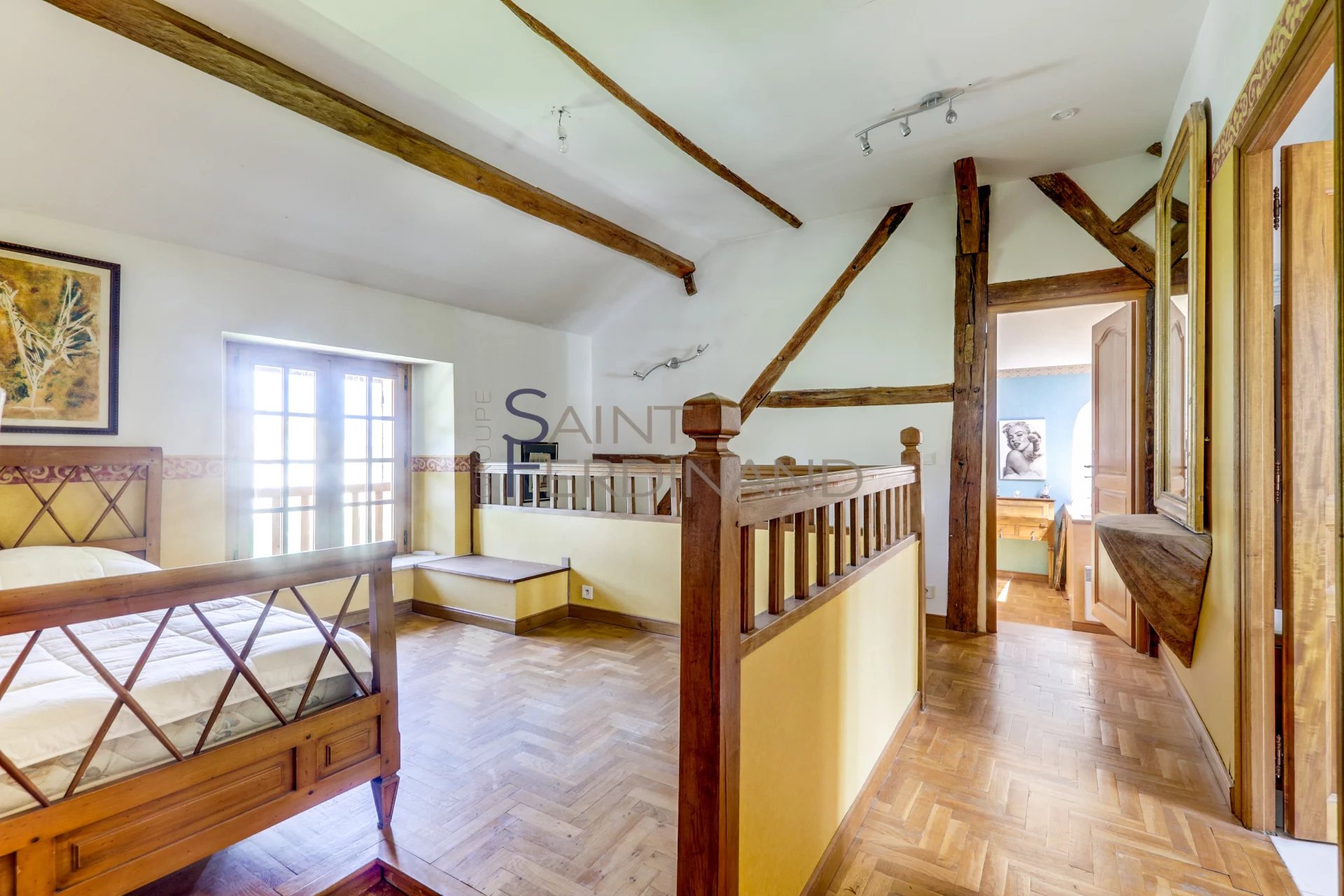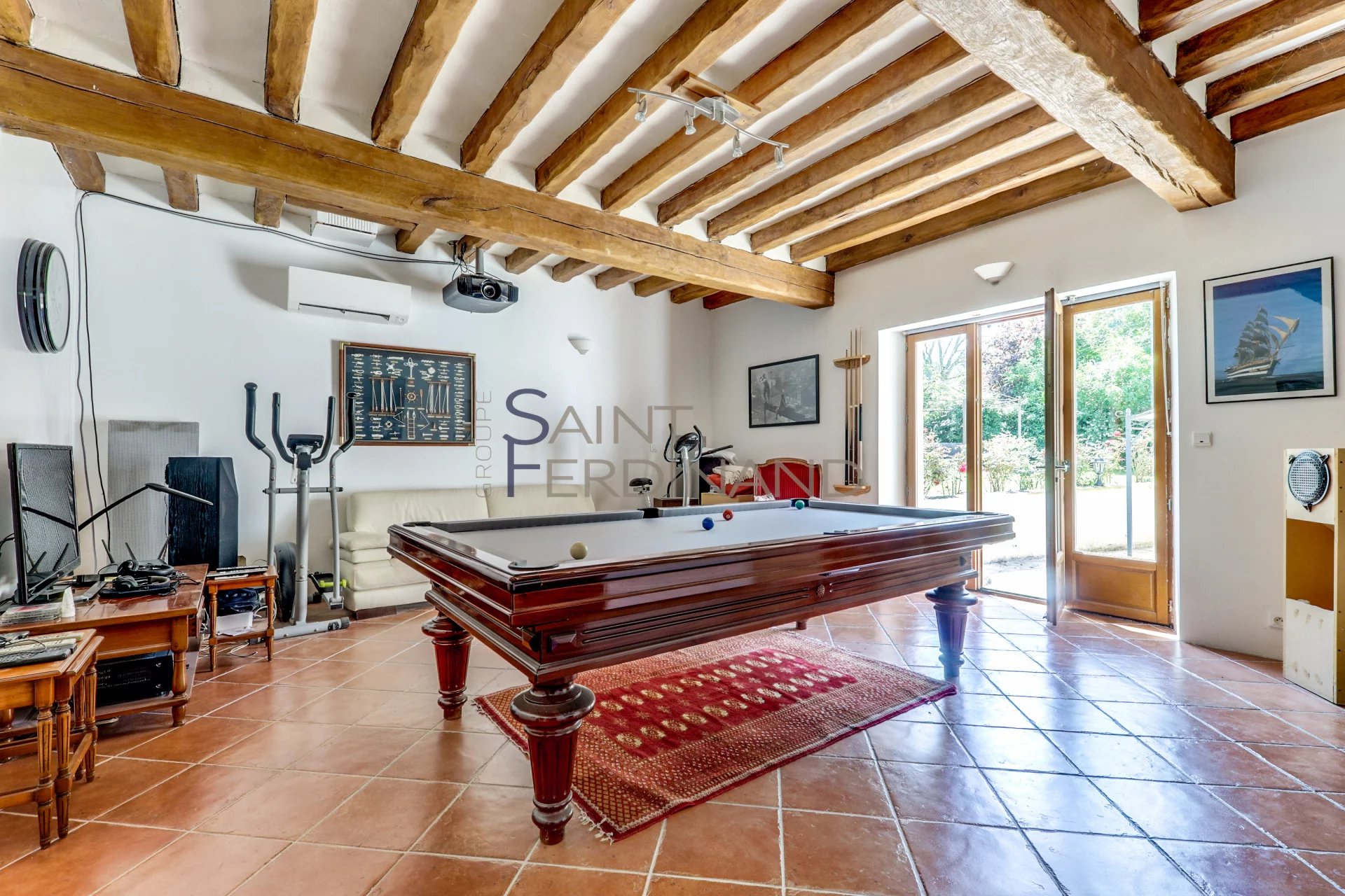 91. Maison de 10 pièces. St CYR s/s Dourdan 91. Saint-Cyr-sous-Dourdan à 7mns de DOURDAN. Jolie maison ancienne en Pierre de 395m² habitables (280m2 carrez), édifiée sur un terrain de 1785m² avec sa piscine. Elle se compose au rez-de-chaussée: d’un grand salon et salle à manger avec cheminée et poutres apparentes donnant sur une grande terrasse, cuisine dinatoire, buanderie, salon TV et billard, bureau, cabinet de toilette. A l’étage: six chambres, salle de bains, deux WC, salle d’eau, dressing, deux greniers, Mezzanine. Atelier, garage, cave à vins, Piscine chauffée. ensoleillé. Caractère. Pour les amoureux du calme et la verdure cette maison est un havre paix.
