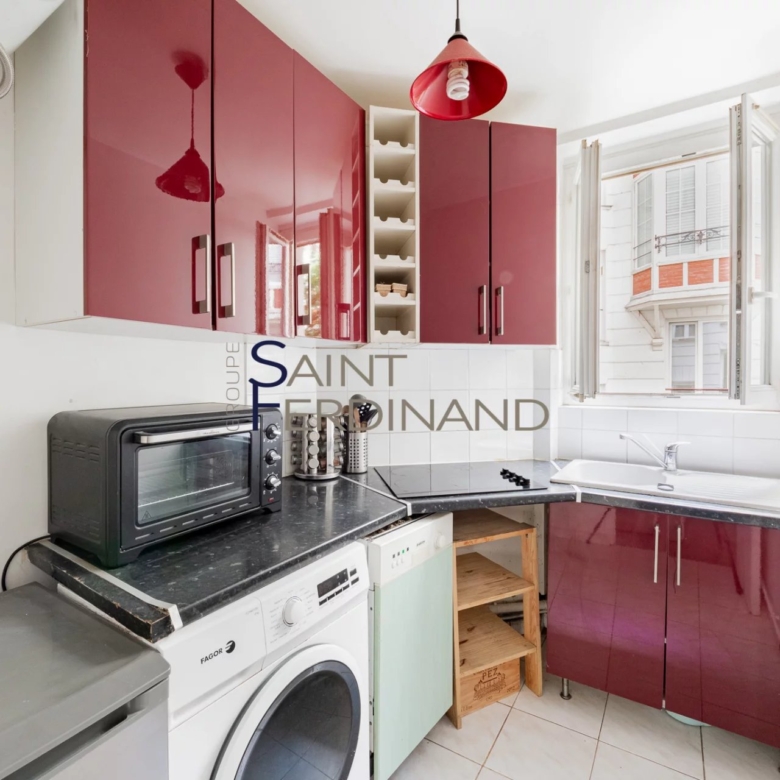 Appartement 1 pièce PARIS 17 E- TERNES/ RUE LABIE- Dans un bel immeuble ancien, le groupe Saint Ferdinand vous propose un studio de 14 m² au RDC sur Cour, composée d’une pièce de vie avec vue dégagée, un coin cuisine, une salle d’eau avec WC. Placards de rangements. Une Cave complète ce bien.