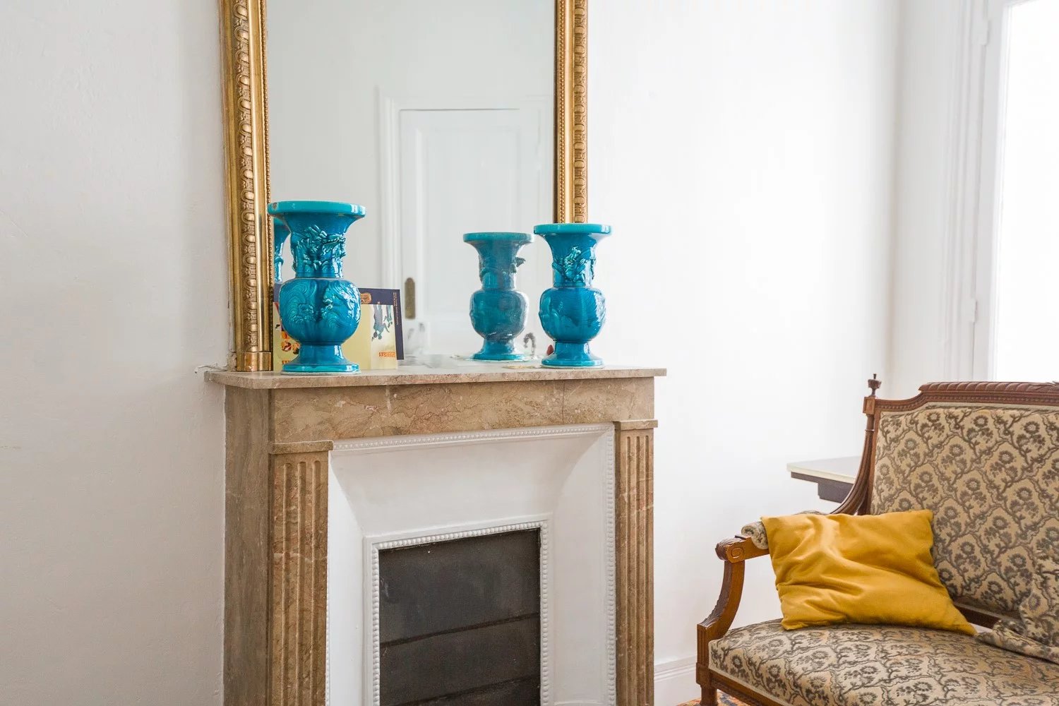 Le charme de l’ancien est omniprésent : parquet en point de Hongrie, cheminées en marbre, moulures élégantes, et une belle hauteur sous plafond de 3 mètres.