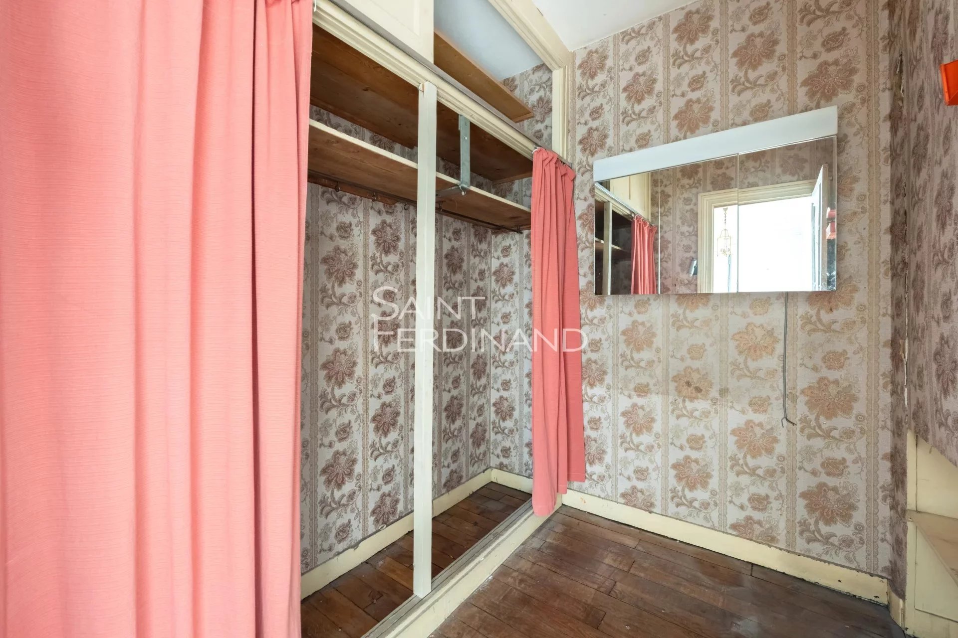 Arc de triomphe 1/2 chambres Au pied de l’Arc de Triomphe et de la célèbre avenue des Champs Elysées, en étage élevé avec vue complètement dégagée plein ciel et au sein d’un immeuble Haussmannien, Le groupe Saint Ferdinand Immobilier a le plaisir de vous proposer ce bien rare et traversant, au 4e étage avec ascenseur. Il se compose d’une entrée, une belle double réception baignée de lumière orientée plein sud, une grande chambre au calme sur jardin, une cuisine dinatoire, une salle de bains, un dressing, une cave. Possibilité de créer aisément une seconde chambre. Un débarras de 6m² accessible par ascenseur complète ce très beau bien à fort potentiel. Des travaux sont à prévoir. Très bon plan, aucune perte de place, lumière, vue dégagée, parquet, moulures et Cheminée. Idéal 1er achat, pied à terre ou investissement. A voir rapidement.