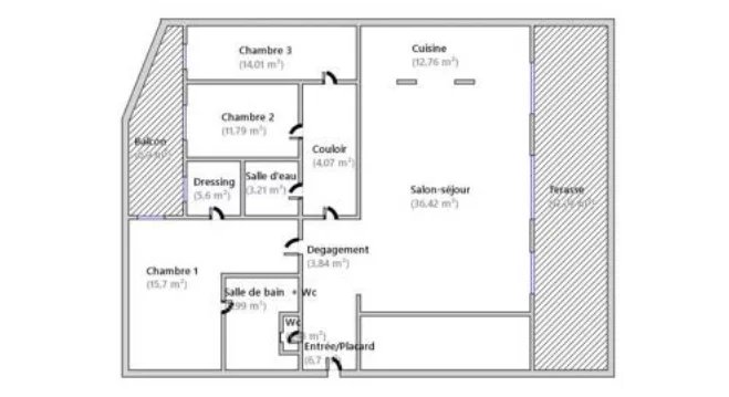 Il est composé d une entrée, un double séjour avec une cuisine américaine entièrement équipée, une suite de maitre avec dressing salle de bains et toilettes, 2 chambres , une salle de douche, un toilette séparé.