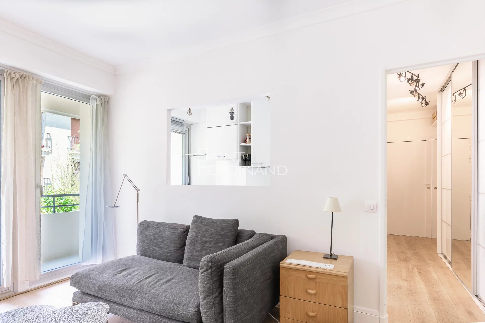 Boulogne Nord – Bois de Boulogne – Parchamp L’agence Saint Ferdinand vous propose un charmant deux pièces dans un immeuble de standing. Une entrée avec placard dressing, un beau séjour avec une cuisine équipée semi ouverte, une chambre et d’une salle de bain avec ses toilettes. L’ensemble de l’appartement bénéficie de grandes baies vitrées donnant accès à un balcon de 9 m2 sur jardin. Très bon état, calme, soleil, environnement privilégié. A voir rapidement!