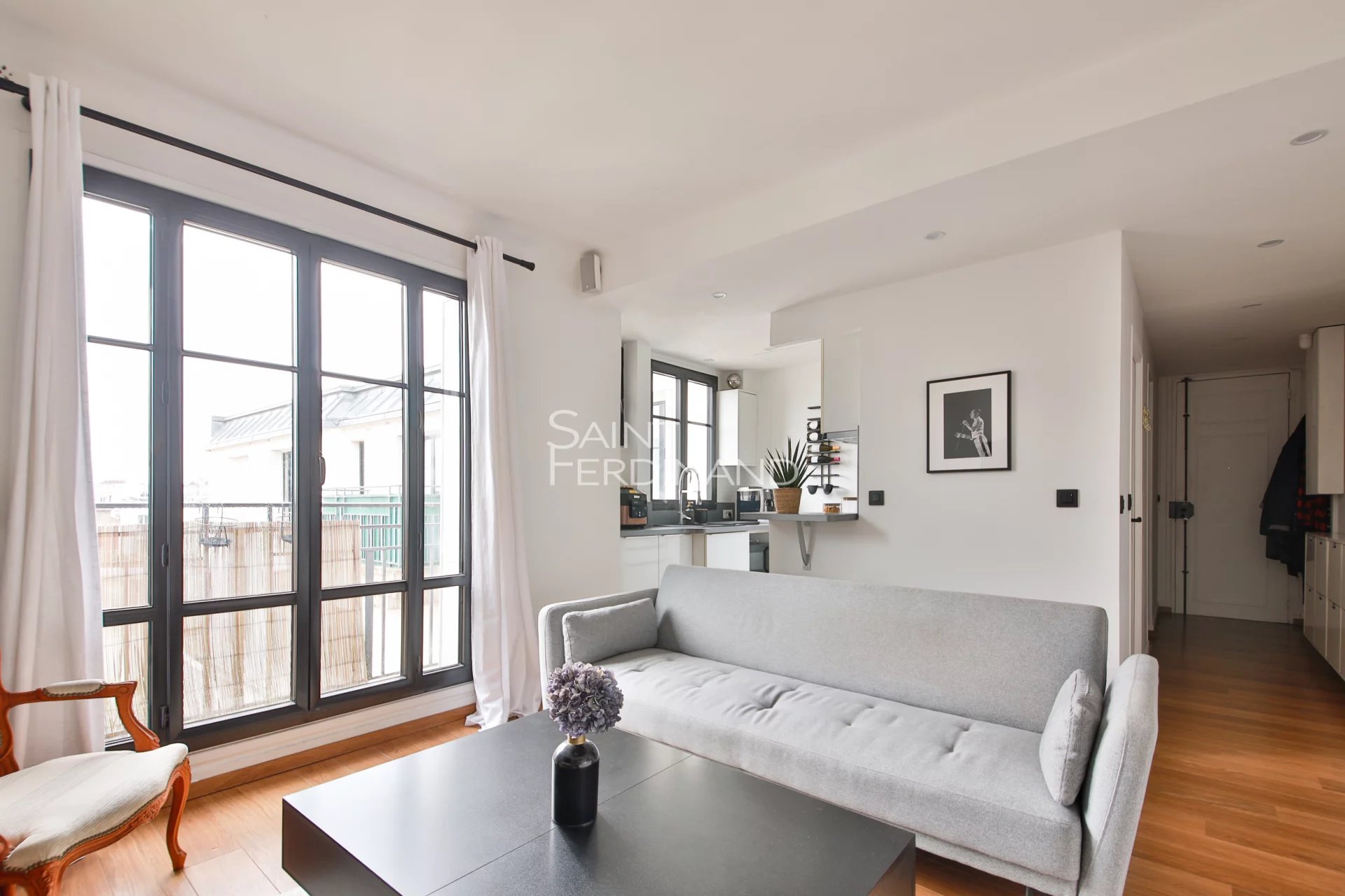 Boulogne Nord Prince Marmottan – 2 pièces Saint Ferdinand Immobilier vous présente à la vente, dans le quartier prisé de Prince Marmottan, un très beau 2 pièces au septième et dernier étage d’une résidence de standing, Il comprend une entrée, un agréable séjour ouvrant sur un balcon avec une vue dégagée, une cuisine us aménagée et équipée (vue Tour Eiffel),une chambre avec une salle de douche, dressing, placard et un toilette indépendant. Baigné de soleil, ce bien en parfait état bénéficie d’un plan optimisé et de nombreux rangements. Calme, au cœur des commerces , à deux pas du bois. A découvrir sans tarder! Les informations sur les risques auxquels ce bien est exposé sont disponibles sur le site Géorisques www.géorisques.gouv.fr.