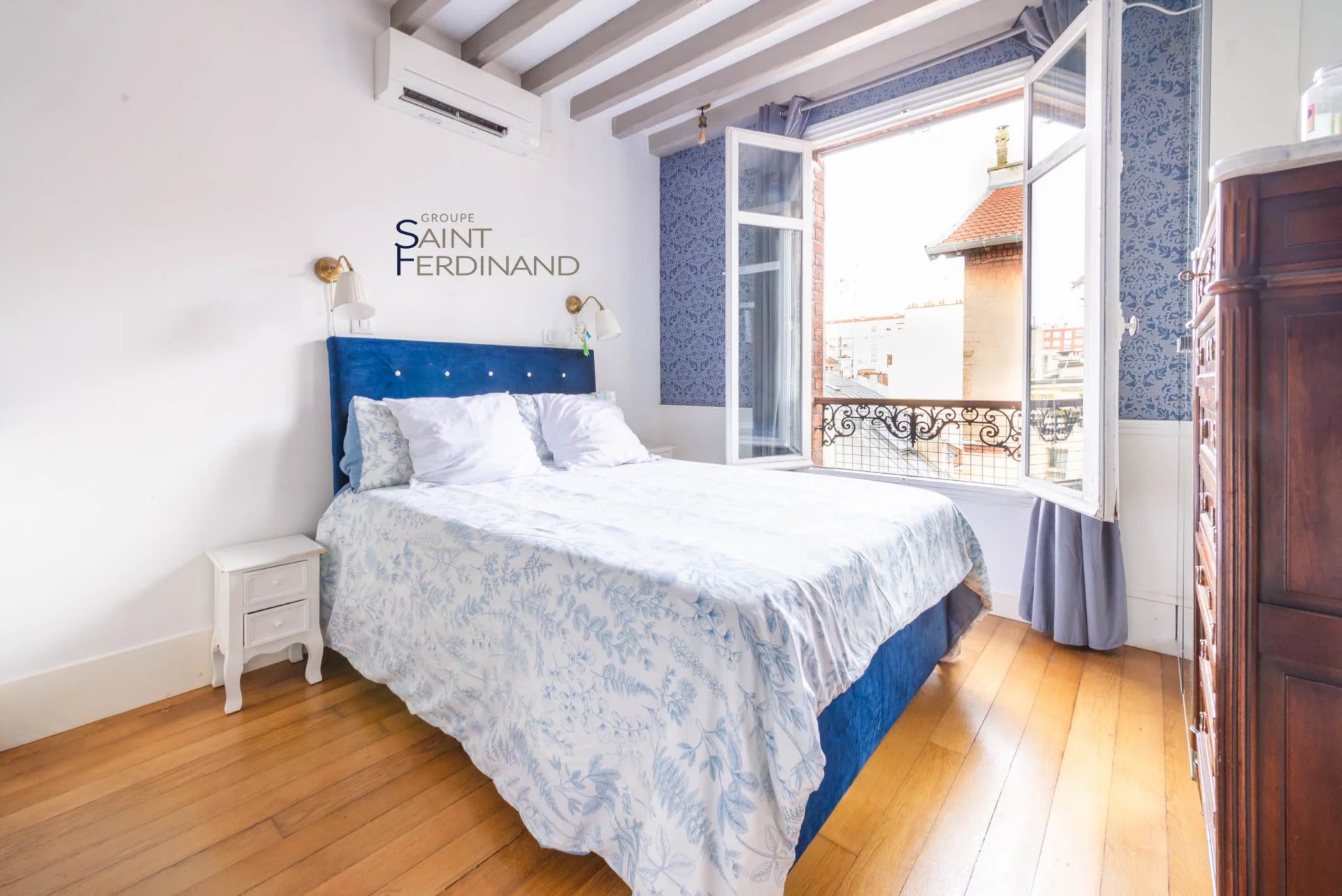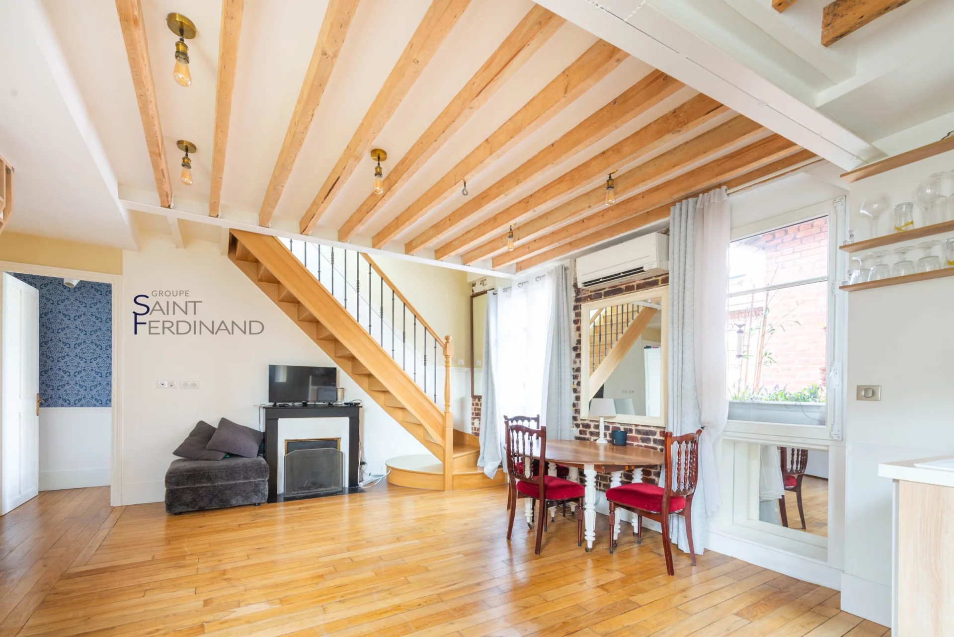 Boulogne Porte de Saint Cloud – Duplex 3 chambres Exclusivité Saint Ferdinand Immobilier. Nous vous proposons dans un immeuble ancien, un beau duplex familial au 5ème et 6ème étage. Il se compose d’une entrée, d’une grande pièce de vie cuisine salle à manger, d’un séjour, de trois chambres, de deux salles de douche, d’une salle de bain, de 2 toilettes et d’un bureau. Loi Carrez 77.07 m² et 119.72 m² au sol. Un cave complètent ce bien en parfait état, au charme incontestable ainsi qu’aux beaux volumes. A découvrir absolument!