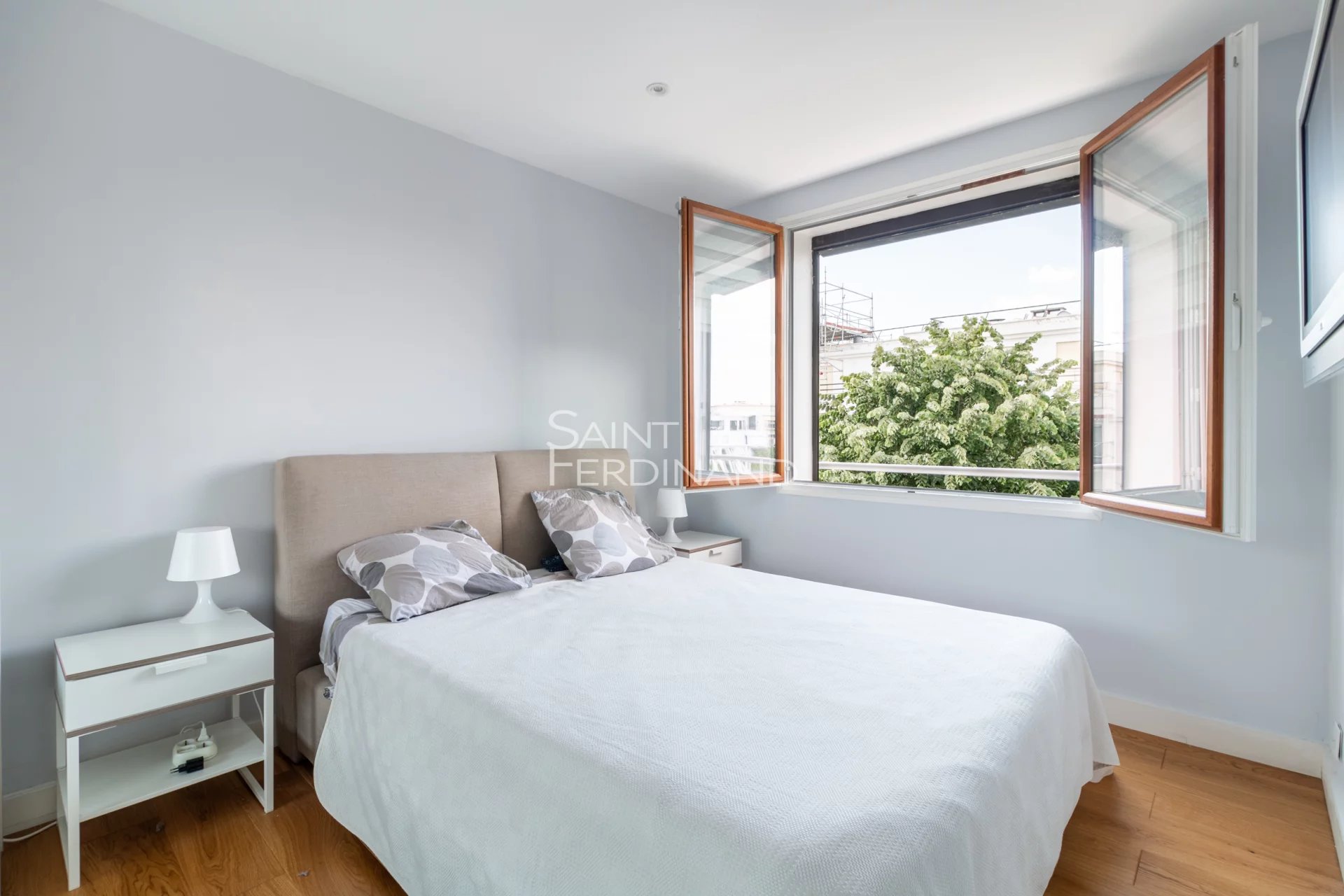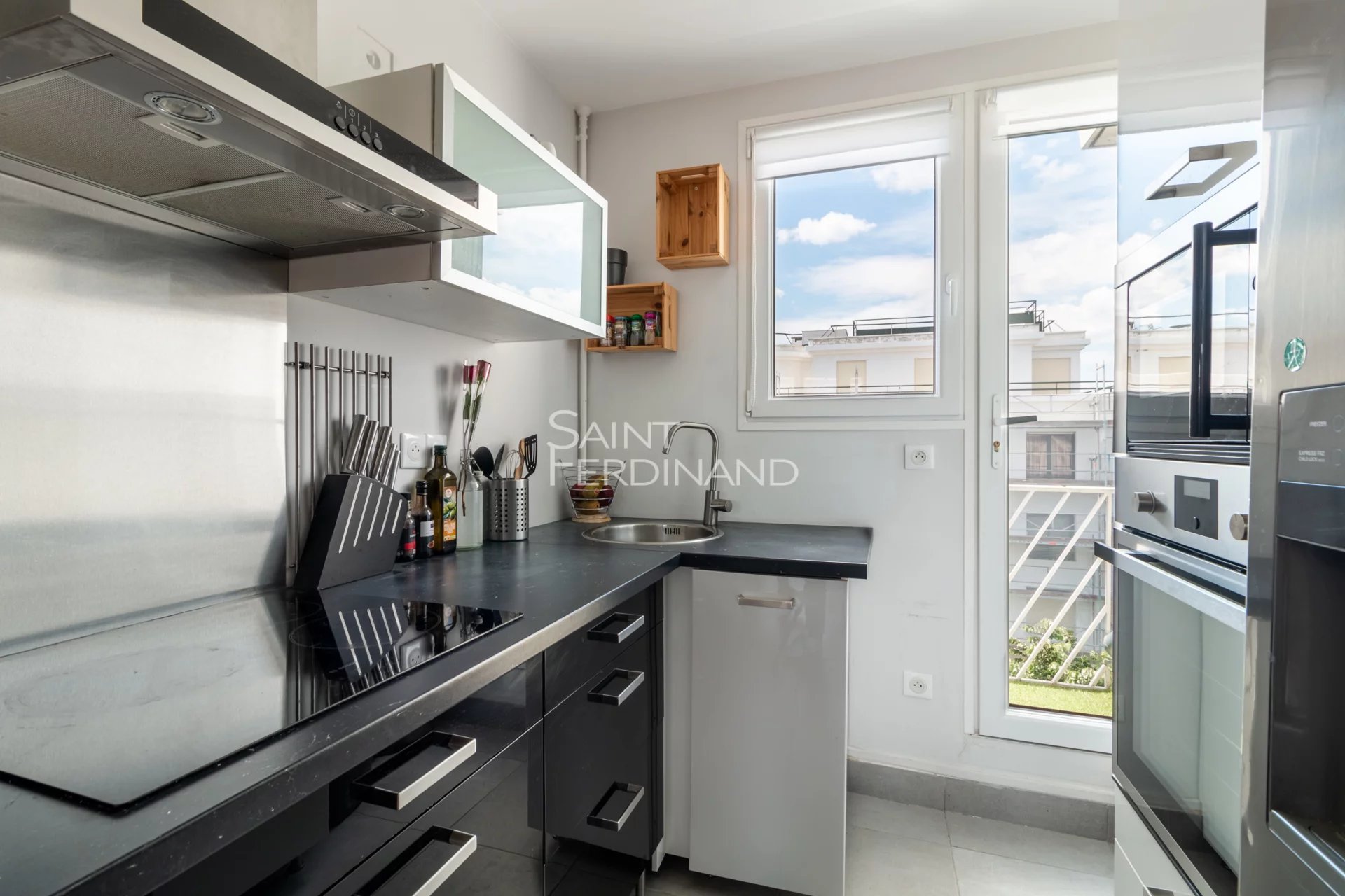 Boulogne porte de St Cloud: 2 pièces dernier étage Quartier Princes Marmottan, dans une résidence très calme semi-récente de qualité avec beaux jardins fleuris, au 5ème et dernier étage ensoleillé sans vis à vis, l’agence St Ferdinand vous présente un très beau 2/3 pièces traversant et rénové, composé d’un double séjour sur balcon large et vue dégagée, une chambre avec placards, une cuisine équipée et aménagée sur balcon et vue arborée, une jolie salle de bains avec douche à l’italienne et WC.