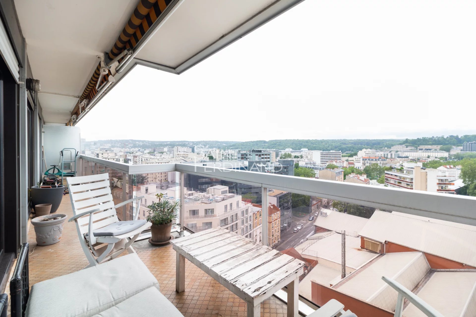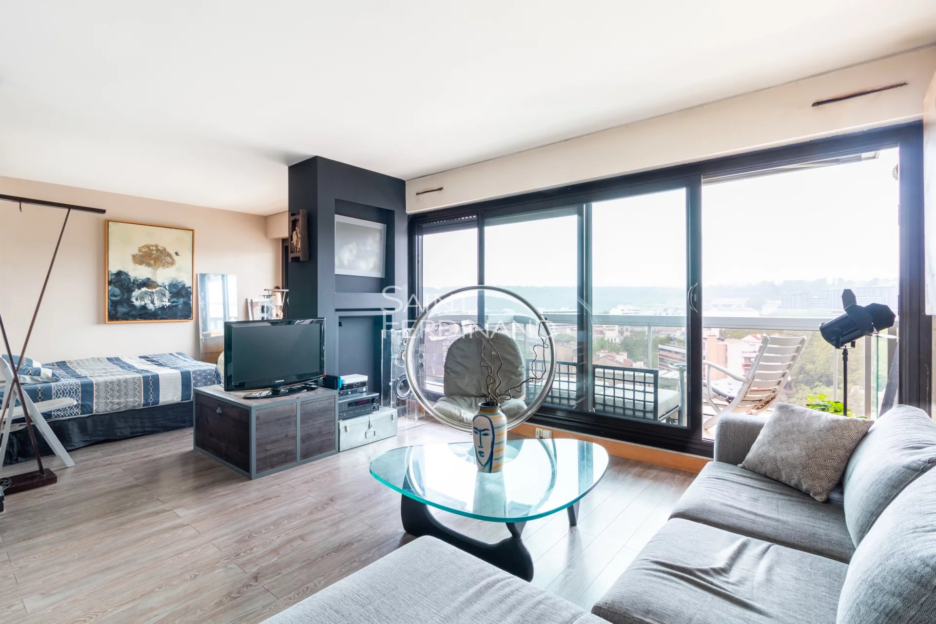 Exclusivité Boulogne Nord – Rhin et Danube Saint Ferdinand Immobilier vous propose en exclusivité au coeur du quartier recherché Parchamp-Albert Kahn, dans un immeuble de bon standing, un magnifique appartement en étage élevé avec vue panoramique sur les collines de Saint Cloud. Il se compose d’une entrée, d’un séjour cuisine US entièrement équipée et aménagée, de deux chambres, d’une salle de bain, toilettes séparés, nombreux rangements. De grandes baies vitrées donnent accès à un balcon- terrasse plein ciel. Une cave et un emplacement de parking en sous sol complètent le bien. Un plan optimal, une vue imprenable, calme à deux pas de toutes les commodités et du métro. A voir absolument !