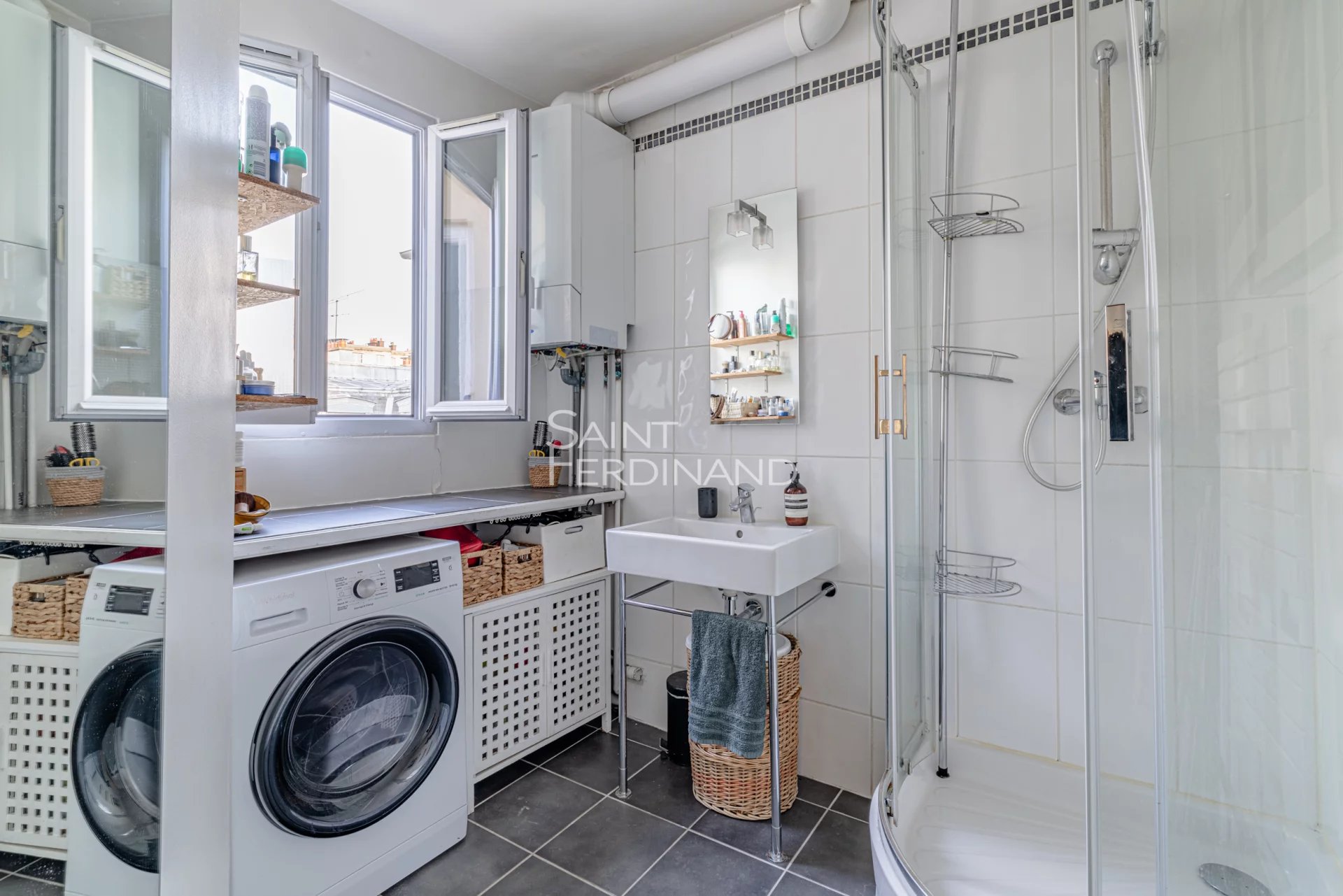 Exclusivité. Paris 17ème Batignolles / Lemercier. Exclusivité. Le Groupe Saint Ferdinand Immobilier vous propose au 5ème et dernier étage d’un immeuble ancien, un magnifique appartement de 3 pièces en bon état composé de : entrée, double séjour avec vue dégagée, cuisine équipée dînatoire, chambre avec rangements, (2° CHAMBRE POSSIBLE) salle de douche, toilette séparé et cave. Plan optimisé, sans perte d’espace. Calme et lumineux exposé Sud-Ouest. Local à vélos. Charges annuelles : 1.800euros. Estimation des couts annuels d’énergie : entre 1.090euros et 1.510euros. Commission incluse de 4 % à la charge de l’acquéreur. Aucune procédure dans la copropriété. Nombre de lots : NC. Les informations sur les risques auxquels ce bien est exposé sont disponibles sur le site Géorisques https://www.georisques.gouv.fr