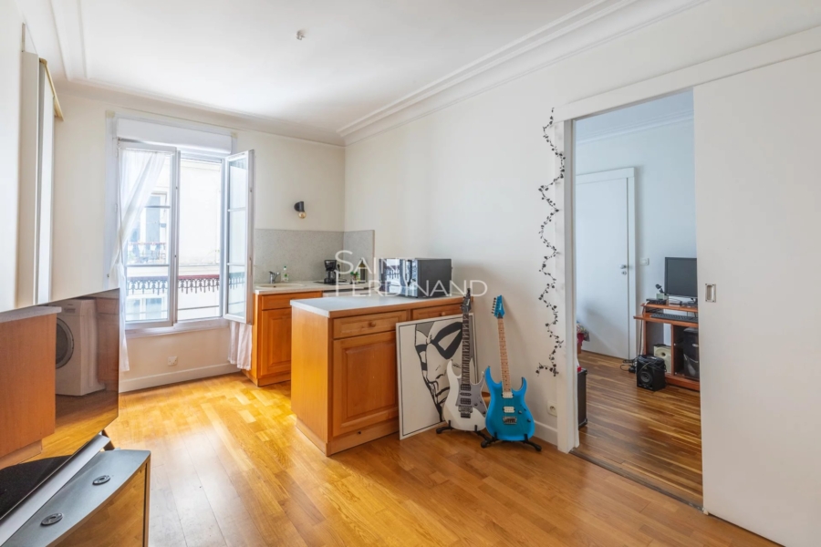 Exclusivité. Paris 17ème Batignolles / Moines. Exclusivité. Le Groupe Saint Ferdinand Immobilier vous propose au 2ème étage d’un immeuble en pierre de taille, un appartement de 31m² en bon état de 2 pièces composé de : entrée, séjour avec cuisine équipée, chambre avec rangements, salle d’eau-wc et cave. Plan optimisé, sans perte d’espace. Calme et lumineux. Idéalement situé, proche des transports et des commerces. Charges annuelles : 996euros. Estimation des couts annuels d’énergie : entre 857 euros et 1 159 euros.Commission incluse de 5.28 % à la charge de l’acquéreur. Aucune procédure dans la copropriété. Nombre de lots : N.C Les informations sur les risques auxquels ce bien est exposé sont disponibles sur le site Géorisques https://www.georisques.gouv.fr