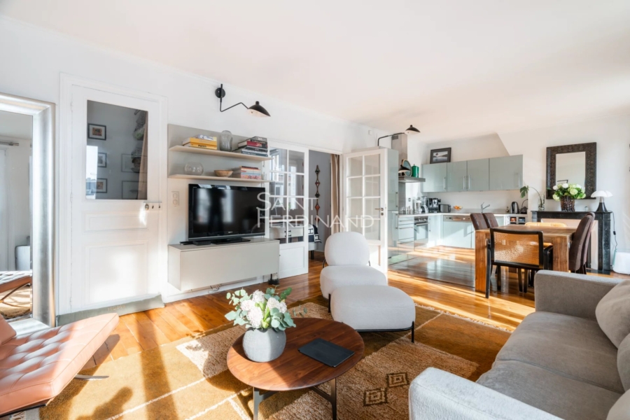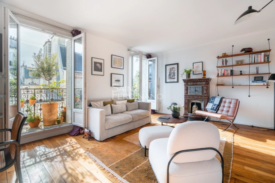 Exclusivité. Paris 17ème Batignolles. Exclusivité. Le Groupe Saint Ferdinand Immobilier vous propose au 5ème étage d’un immeuble Pierre de Taille, un magnifique appartement traversant en excellent état de 3 pièces composé de : entrée, double séjour avec balcon de (5.04m²), cuisine ouverte équipée, chambre, salle d’eau-wc et cave. Plan optimisé, sans perte d’espace. Calme et très lumineux. Sans vis à vis, vue dégagée. Idéalement situé, proche des transports et des commerces. Charges annuelles : 1.560euros. Estimation des couts annuels d’énergie : entre 1170 euros et 1620 euros. Commission incluse de 4.26 % à la charge de l’acquéreur. Aucune procédure dans la copropriété. Nombre de lots : N.C. Les informations sur les risques auxquels ce bien est exposé sont disponibles sur le site Géorisques https://www.georisques.gouv.fr