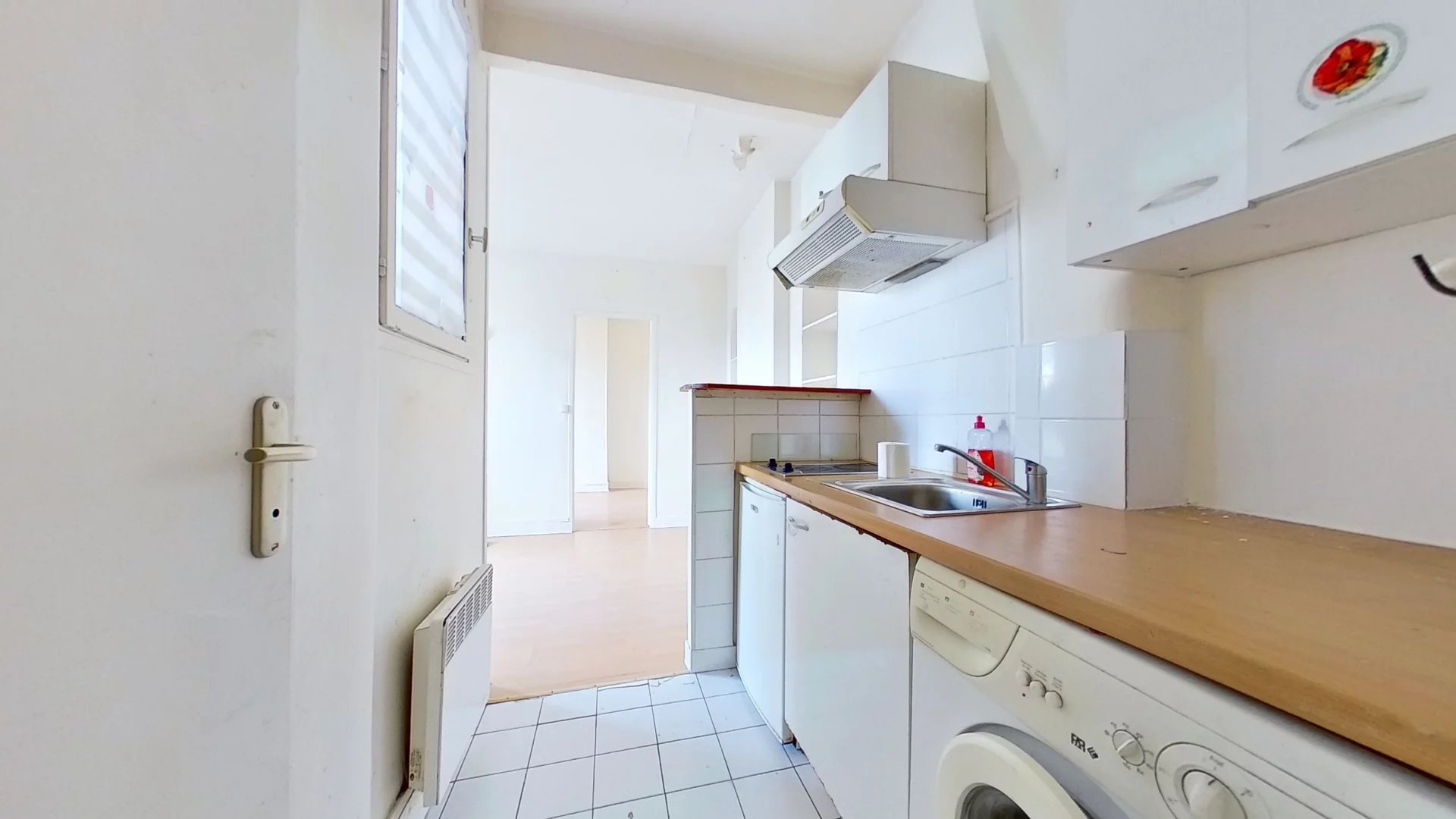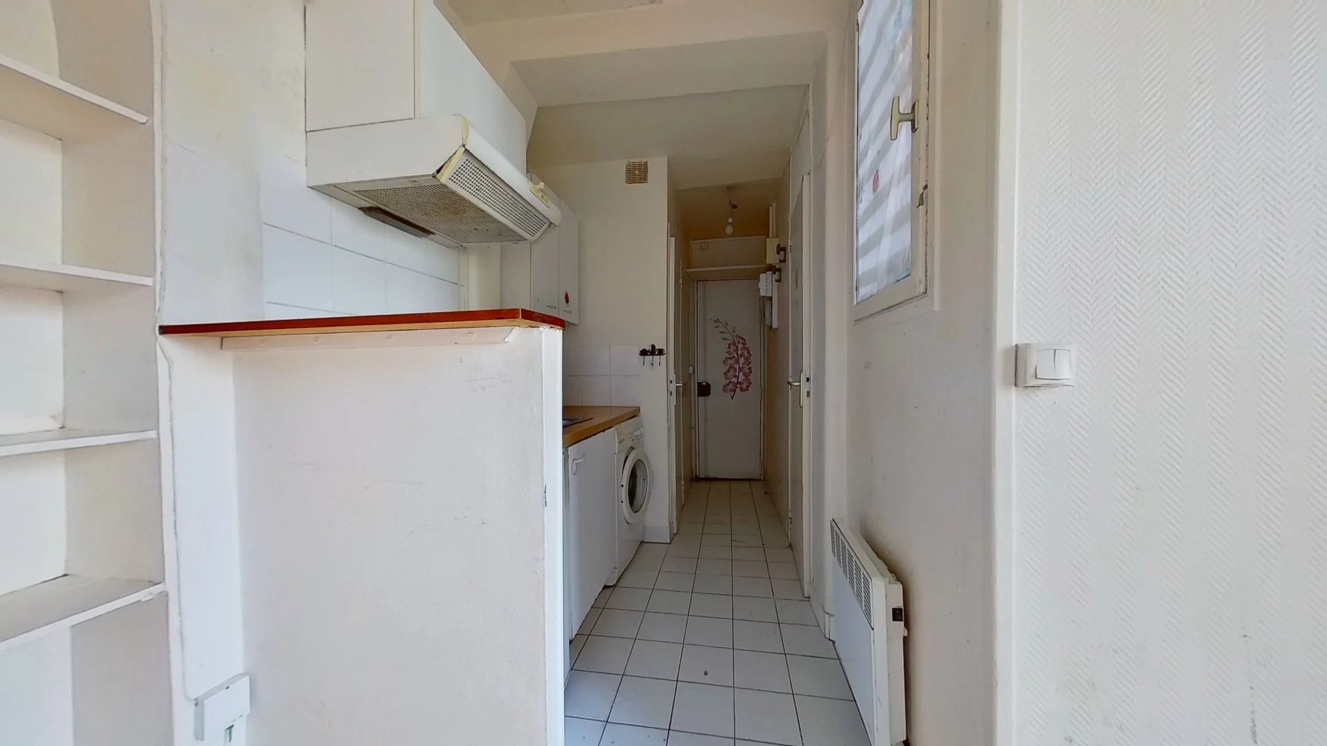 Exclusivité.Paris 17ème Proche Batignolles Saint Ferdinand Immobilier vous propose en exclusivité au 4ème étage d’un immeuble ancien, un appartement de deux pièces avec: une entrée, un séjour, une chambre, une cuisine, une salle d’eau et des toilettes indépendants. L’appartement bénéficie d’un plan hyper optimisé, il donne entièrement sur une cour au calme avec une jolie vue dégagée. A proximité des commerces des Batignolles. Métro: Brochant. Charges annuelles: 1.356euros. Commission incluse à la charge vendeur.