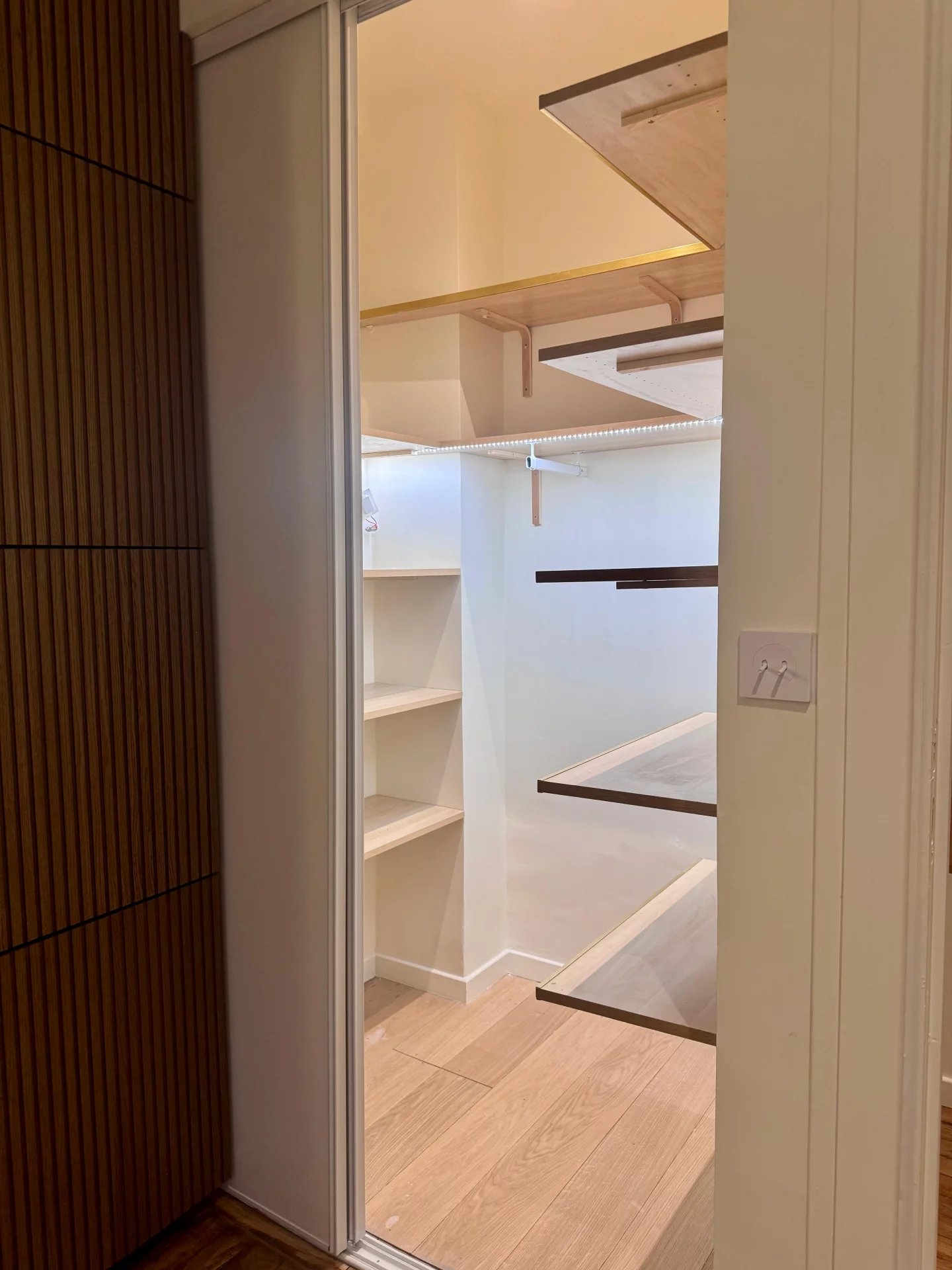 Situé au 1er étage d’un immeuble, ce superbe deux-pièces traversant a été entièrement rénové avec goût.