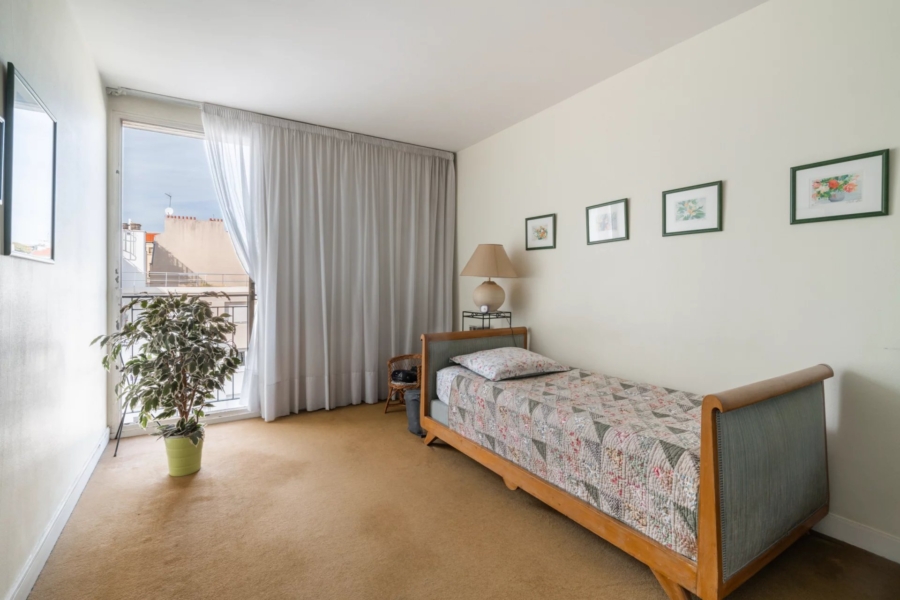 Situé au 5eme étage avec ascenseur et sans vis a vis, il se compose d’une entrée, d’un séjour exposé sud-est , d’une cuisine séparée, de deux chambres sur cours , d’une salle de bains et de W.C séparés.