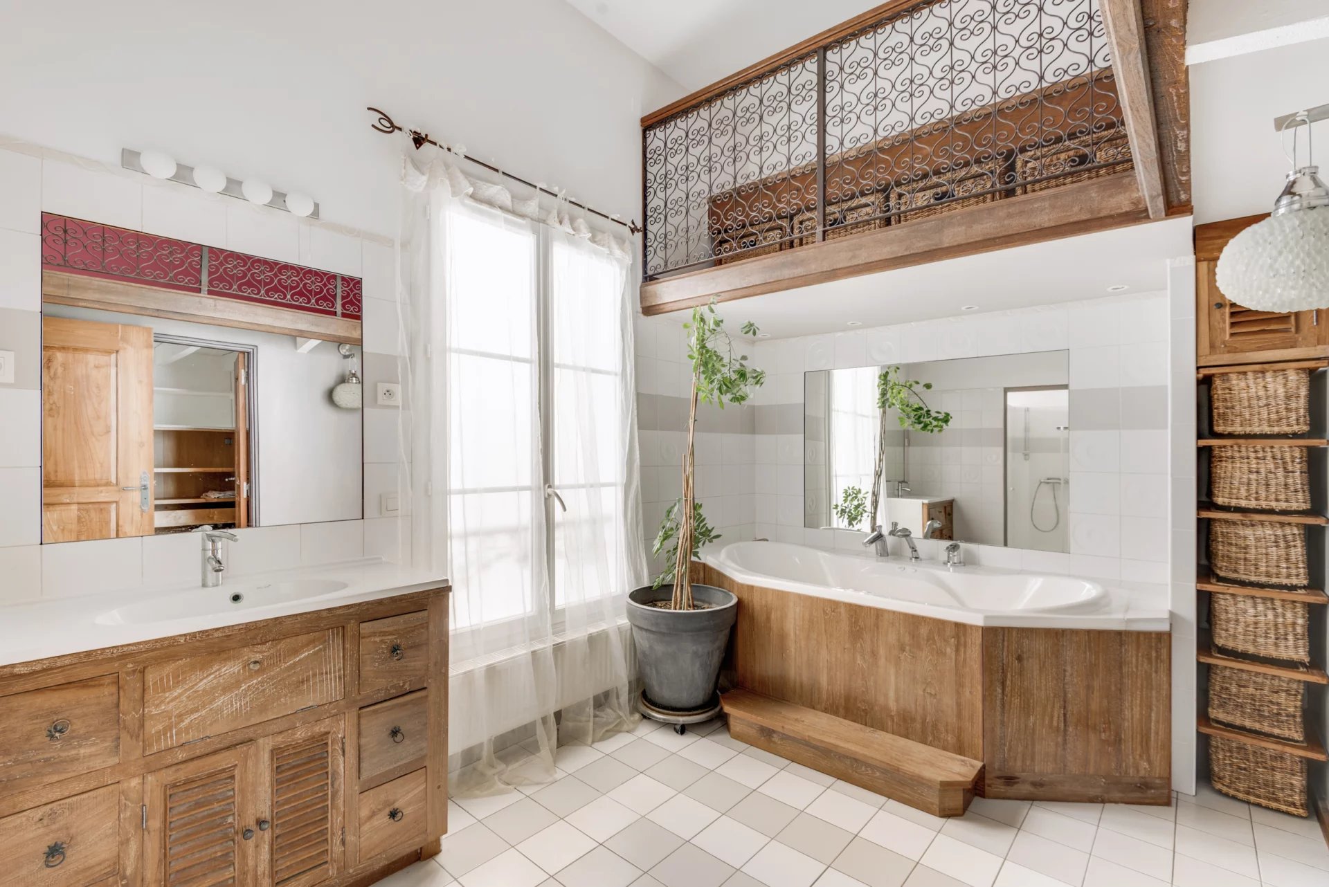 Au deuxième niveau une grande chambre, une salle de bains avec baignoire balneo, une douche avec toilettes et un grand dressing.