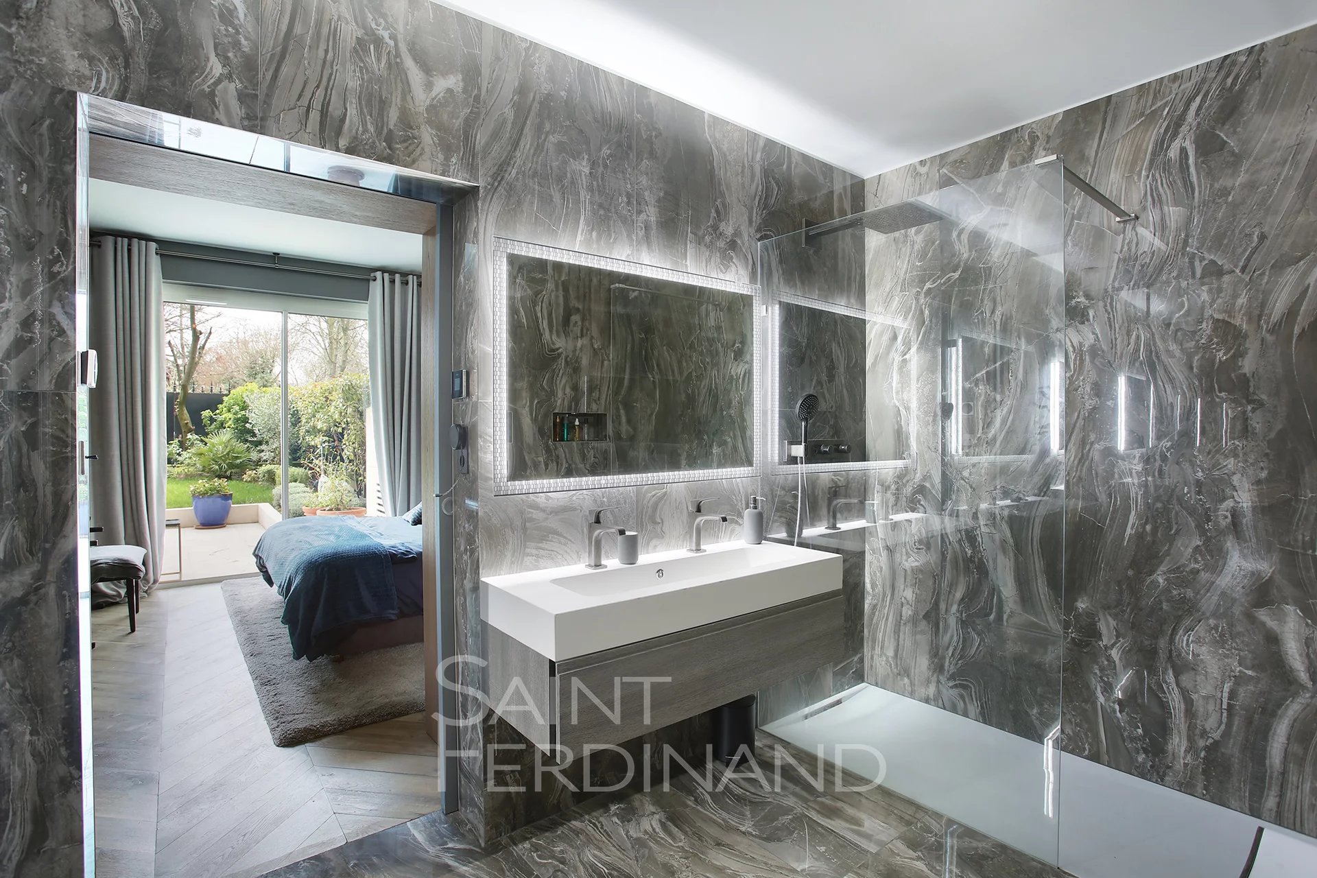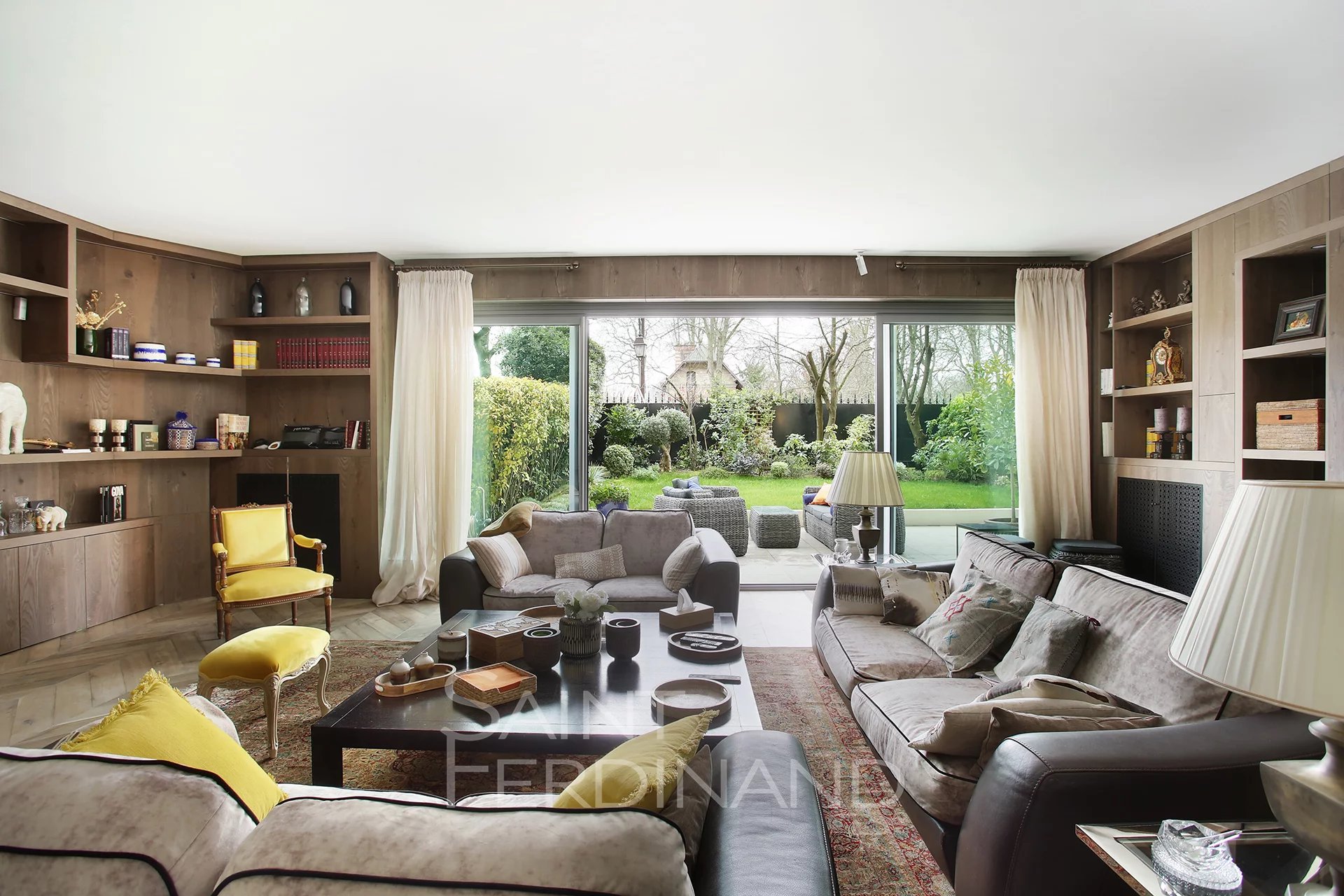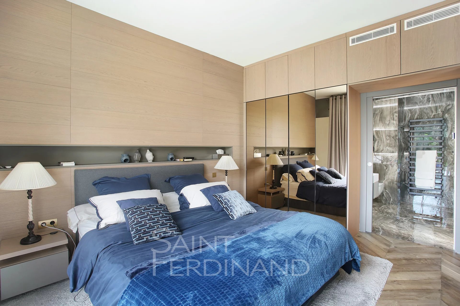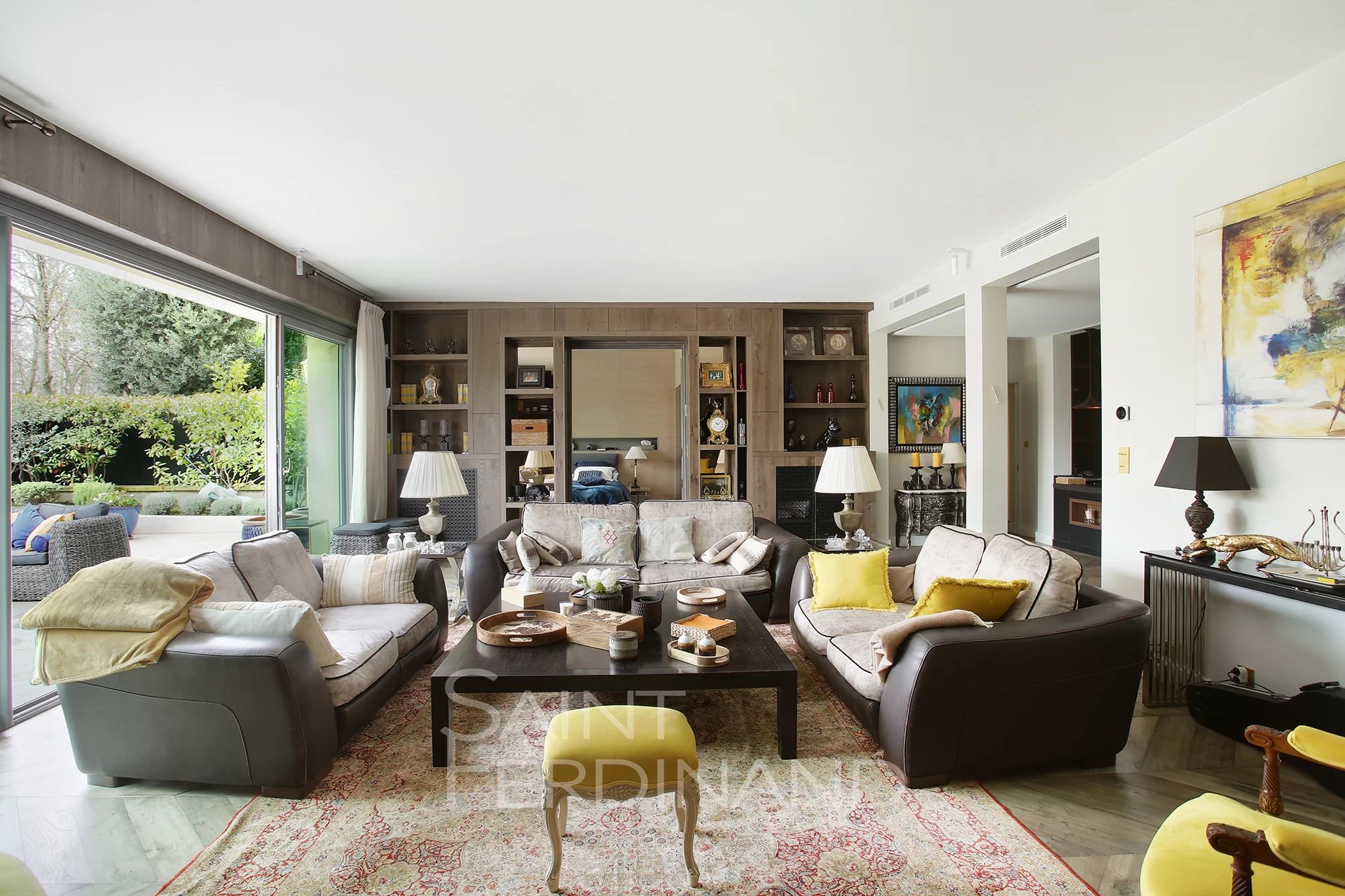 Limite Neuilly Bois Terrasse et jardin 16e Côté Neuilly sur Seine. Face au Bois de Boulogne, l’Agence Saint Ferdinand vous propose ce magnifique appartement d’une surface de 142m²(141,41m² Loi Carrez) aux prestations haut de gamme avec jardin et terrasse arborée, (130m²). Il se compose d’une entrée, d’une vaste réception baignée de lumière donnant sur la terrasse et le jardin, d’une cuisine semi-ouverte entièrement équipée, de 3 chambres dont une suite parentale avec dressing et salle de bains, une deuxième salle de douche.