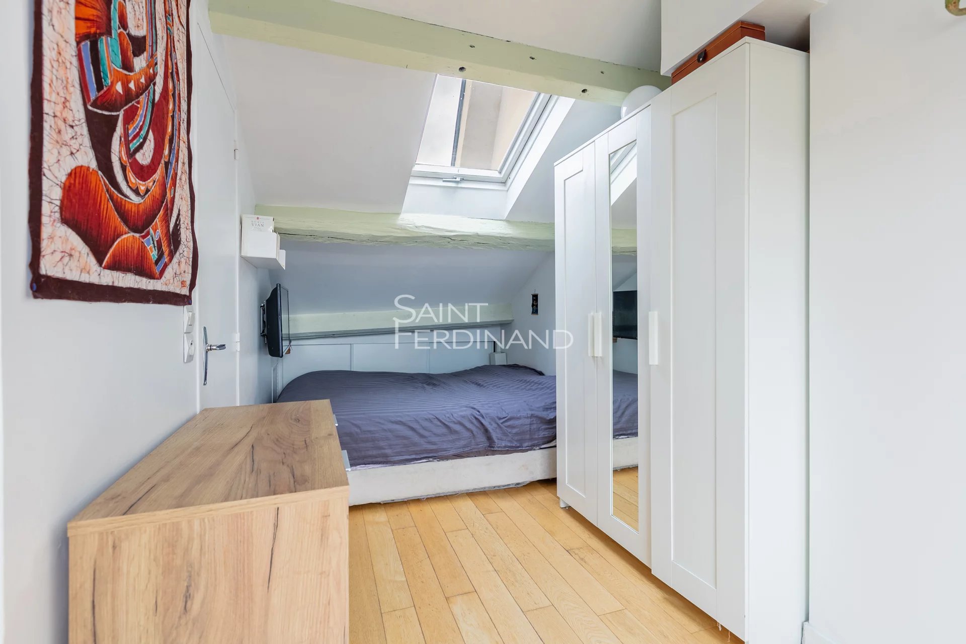 Marché Lévis rue de Tocqueville Terrasse Au 4° et dernier étage d’un immeuble ancien, Saint Ferdinand immobilier vous présente un superbe duplex avec terrasse.Il se compse de : entrée, séjour, cuisine américaine aménagée, chambre sur cour avec vue dégagée, salle d’eau-Wc.A l’étage : chambre avec terrasse attenante, salle d’eau-Wc.Une cave complète ce bien.Traversant, calme et lumineux (exposition sud ouest).Charges mensuelles: 148 euros.Nombre de lots: 24. Aucune procédure dans la copropriété.