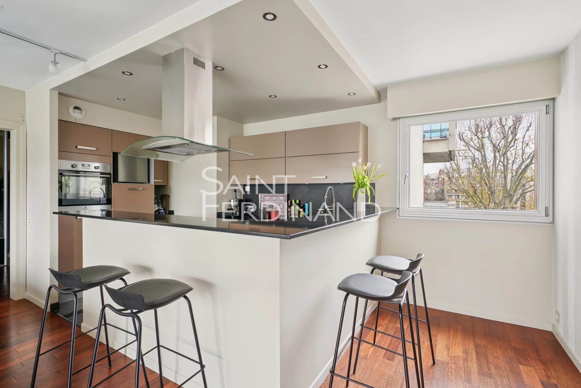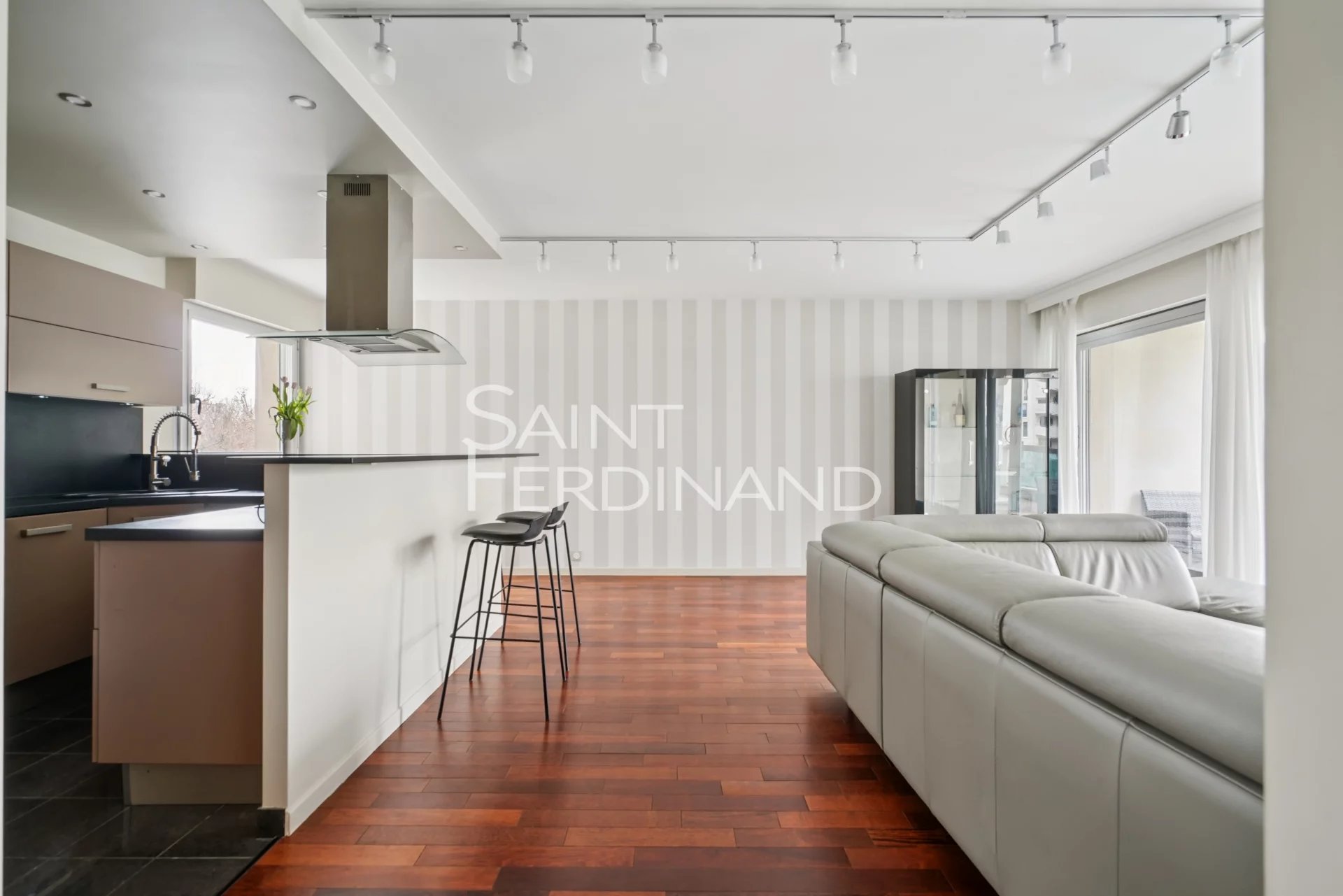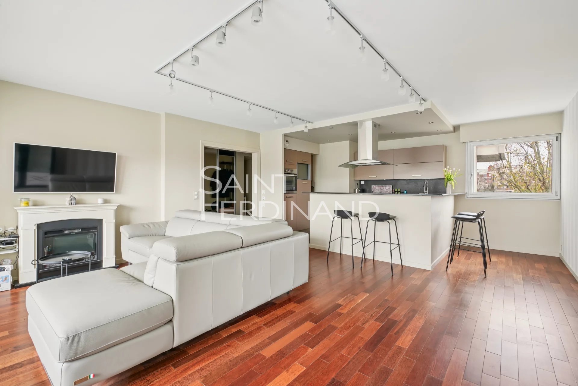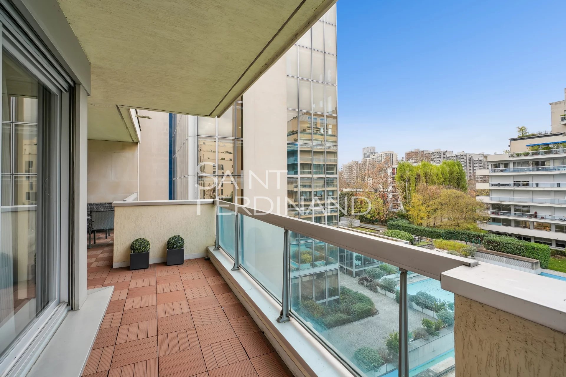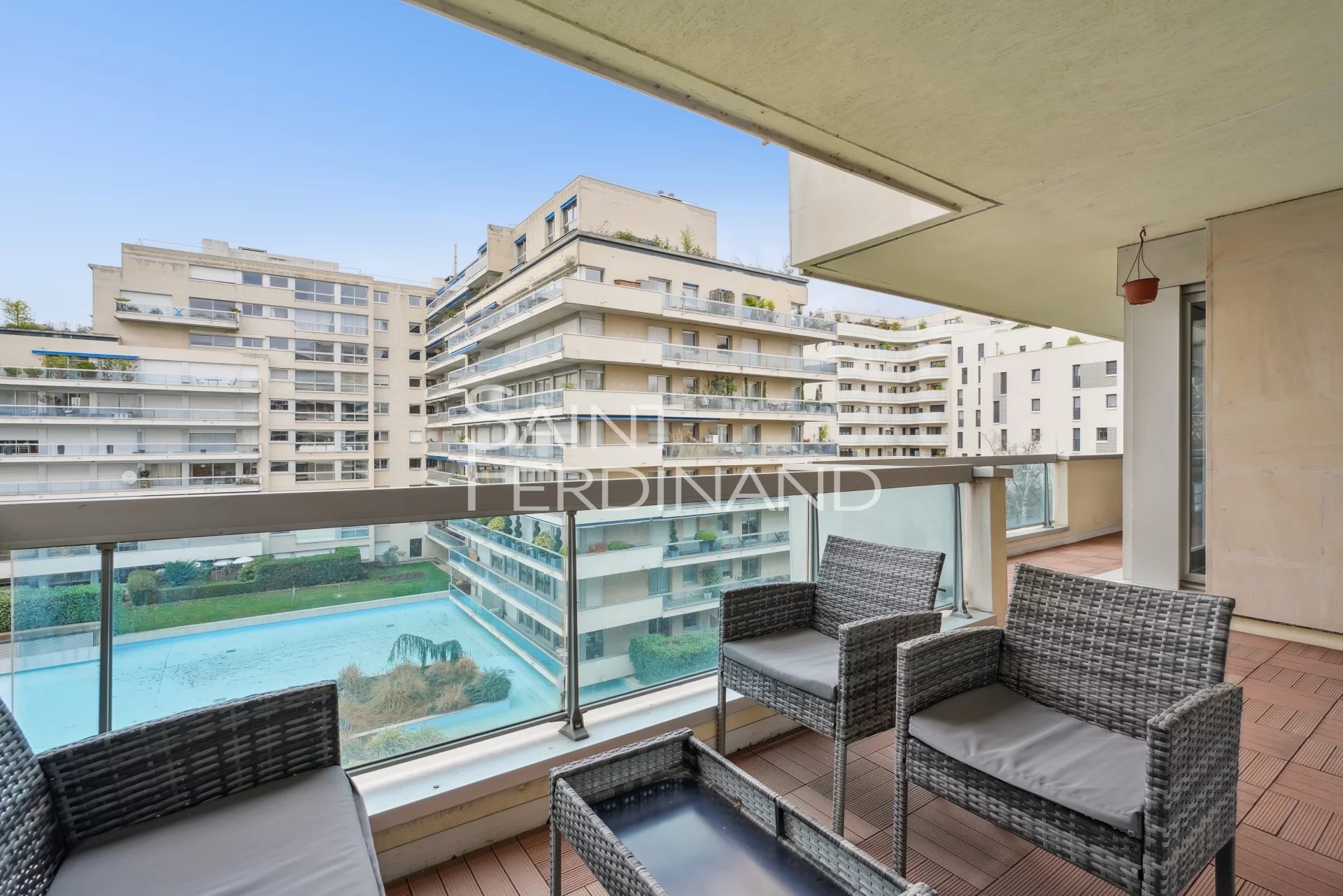 NEUILLY 2 CHAMBRES ETAGE ELEVE Saint Ferdinand Immobilier a le plaisir de vous présenter ce très bel appartement situé dans une belle résidence récente de standing avec gardien à demeure, en étage élevé avec ascenseur, au plan parfait et aux prestations de qualité. Cet appartement se compose d’une entrée, un séjour avec une très belle vue dégagée donnant sur un balcon terrasse de 20m2, une cuisine équipée ouverte, deux chambres, une salle de bains, WC séparé. Une cave complète ce bien. Possibilité d’acquérir un parking en sus. Proche des commerces, calme et lumineux. Sectorisation : Lycée Pasteur.