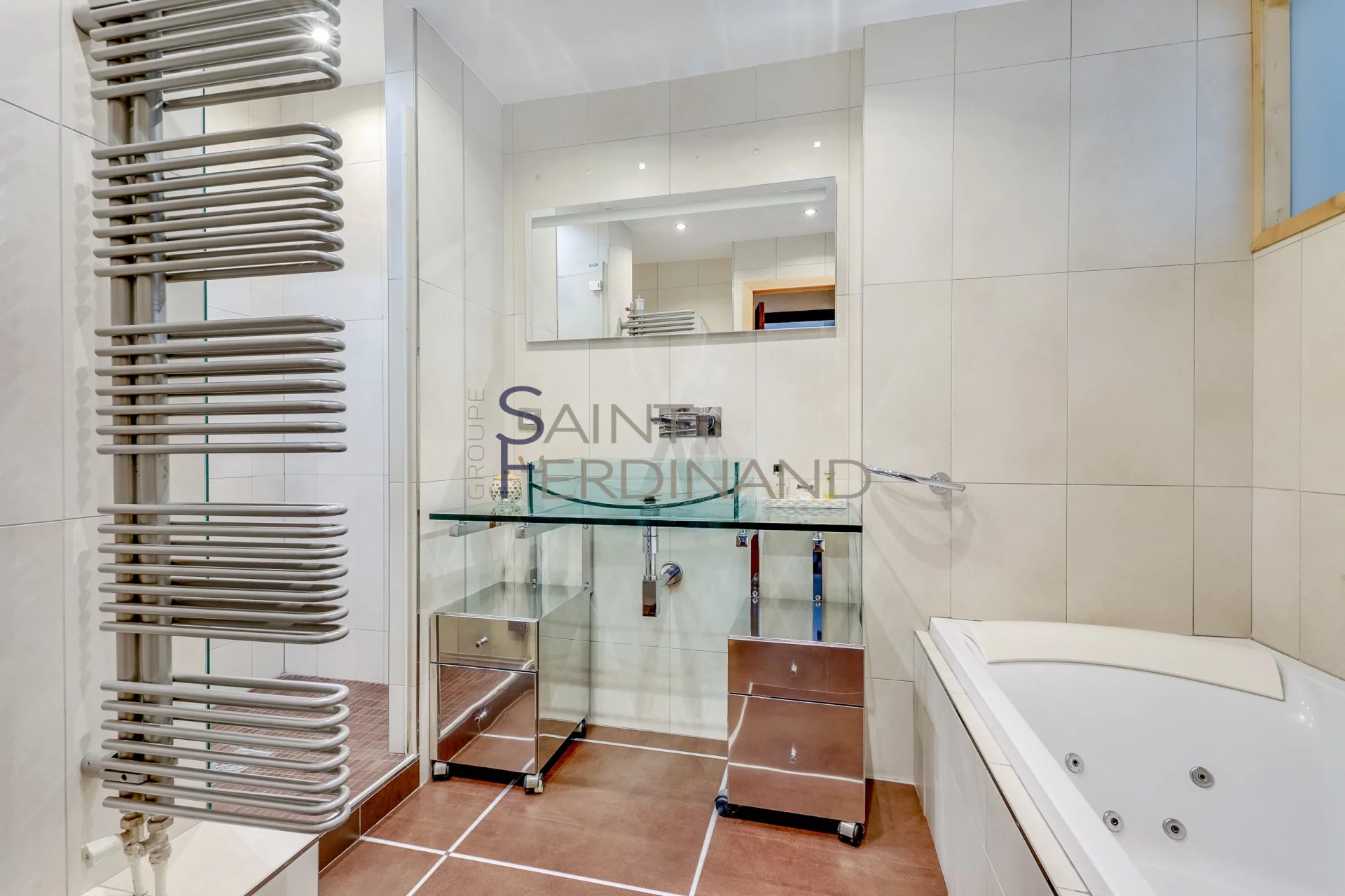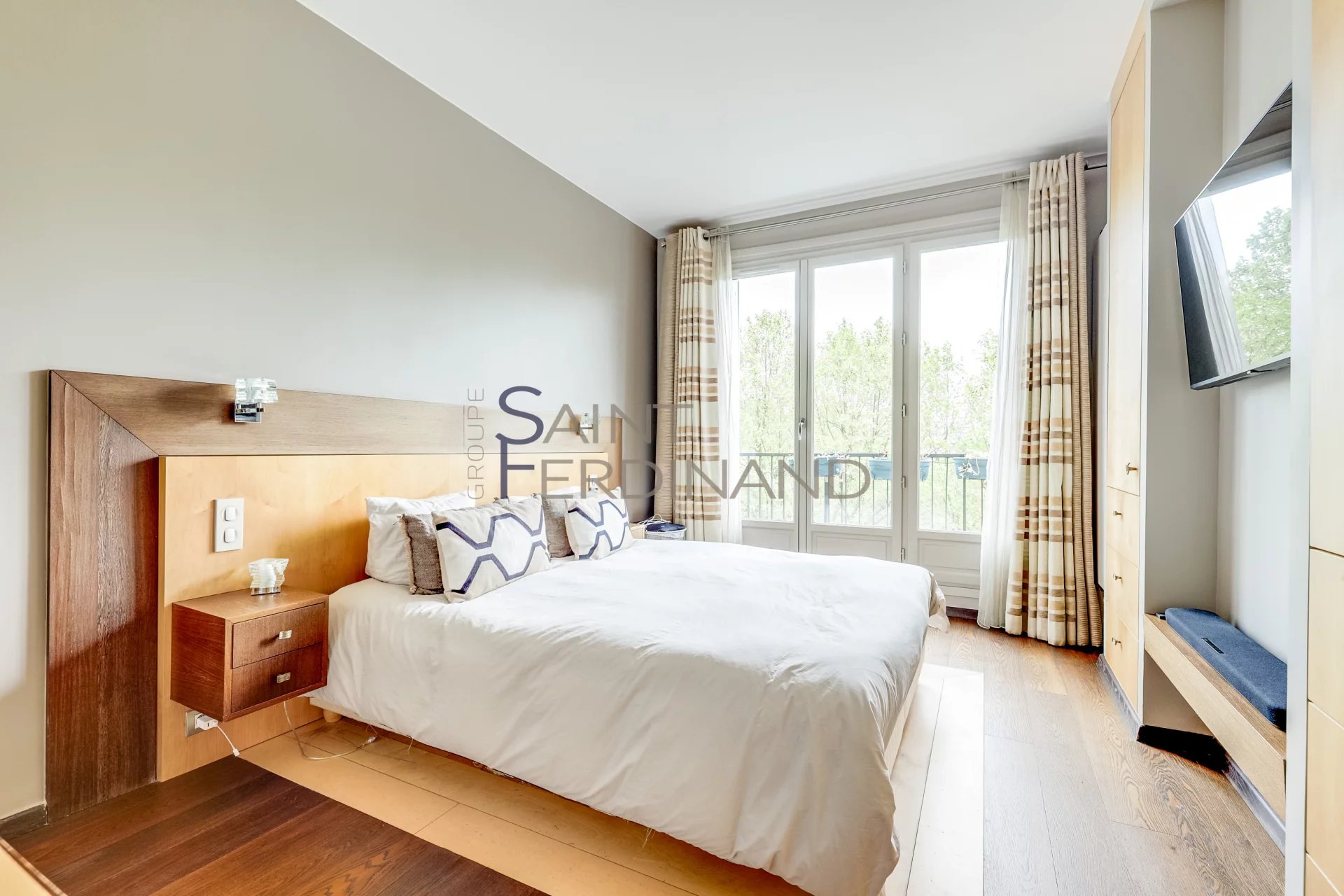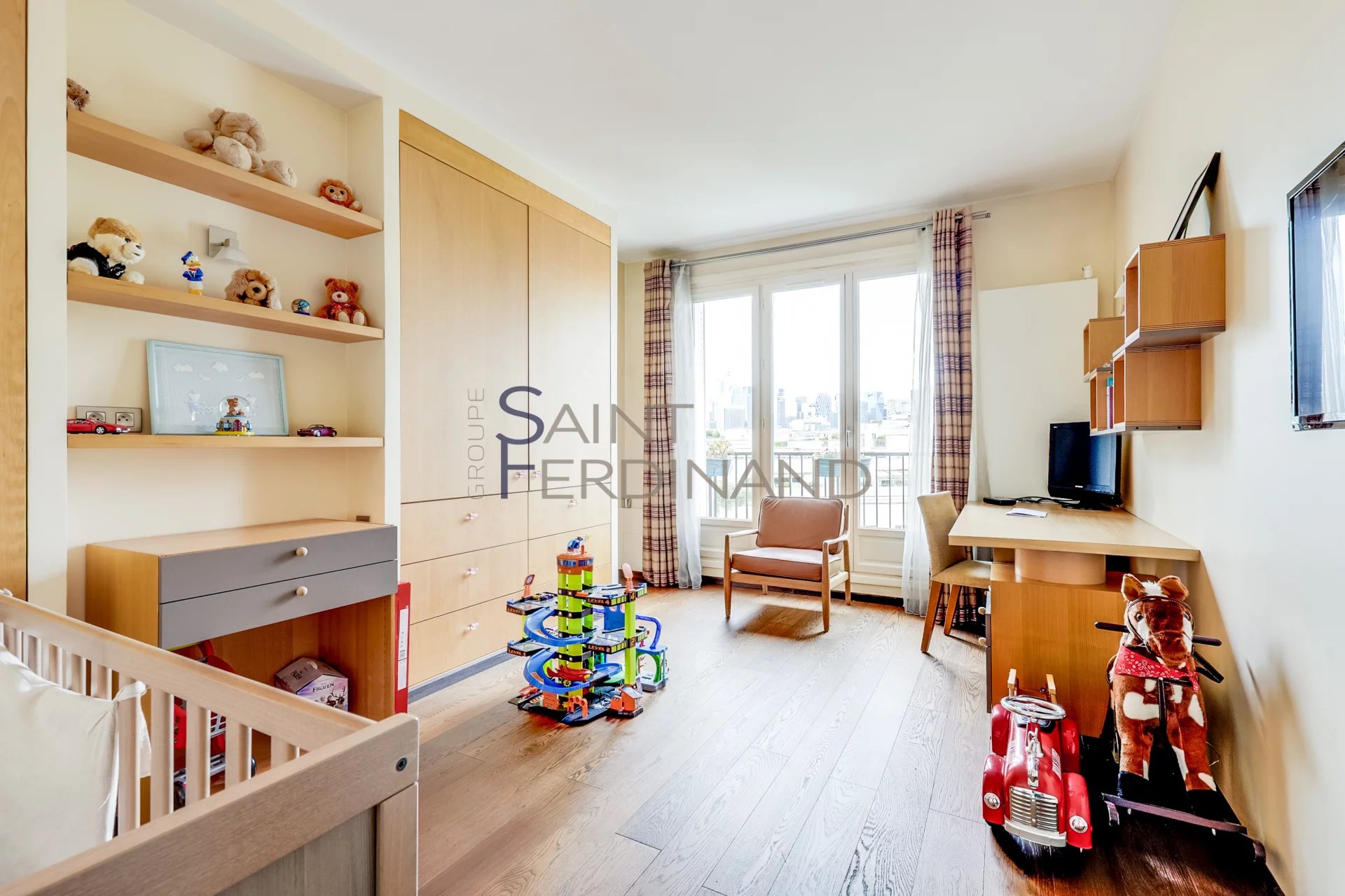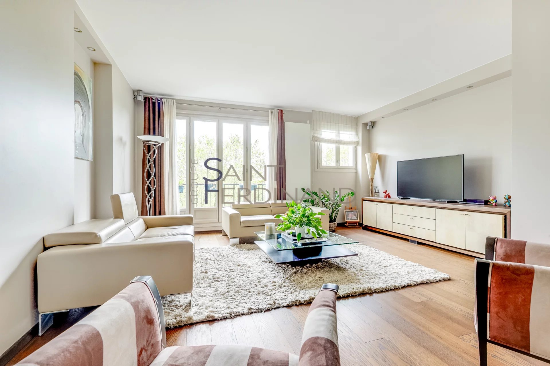 NEUILLY. DUPLEX TERRASSE. VICTOR HUGO. Neuilly sur Seine Bd Victor Hugo. Bel immeuble 1965 en pierre de taille. Le Groupe Saint Ferdinand vous propose un duplex rooftop au 5ème et 6ème étage (dernier) par ascenseur. Appartement cinq pièces de 128 m2 + une terrasse arborée et aménagée de 228 m². Il se compose au cinquième étage : un salon avec balcon filant, une suite parentale avec salle de bains WC et placards, deux chambres avec placards et leur salle d’eau. WC séparés. Au 6ème étage : une cuisine équipée ouverte sur la salle à manger donnant sur une superbe terrasse plein ciel. Buanderie. 2 caves et 2 parkings complètent ce bien d’exception. Climatisation. Parquet. Bon plan sans perte de place. Soleil. Calme. Commerces à proximité. Ecoles.