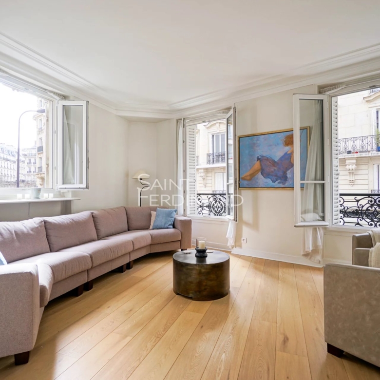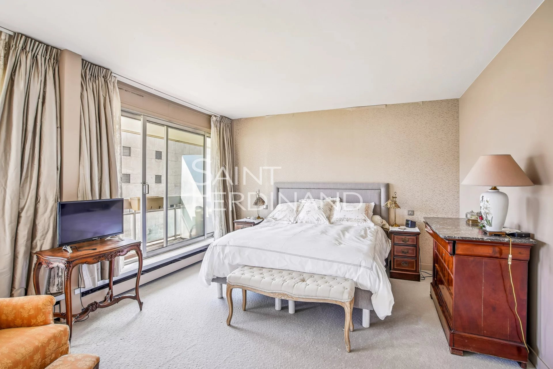 Neuilly Edouard Nortier 3 chambres Saint Ferdinand Immobilier a le plaisir de vous présente, dans un immeuble récent de bon standing au 2e étage avec ascenseur, ce bel appartement bénéficiant d’une magnifique vue dégagée et d’un très bon plan. Il se compose d’une entrée, un double séjour donnant sur un large balcon, une cuisine séparée avec arrière-cuisine, 2 chambres (3 à l’origine) dont une grande suite parentale donnant sur balcon, deux salles de douche dont une avec toilettes, WC séparé. Nombreux rangements, 2 balcons totalisant 20m2. Très bon plan, sans vis à vis, lumineux. Ce bien est complété d’une cave. Un parking en sous-sol en option.