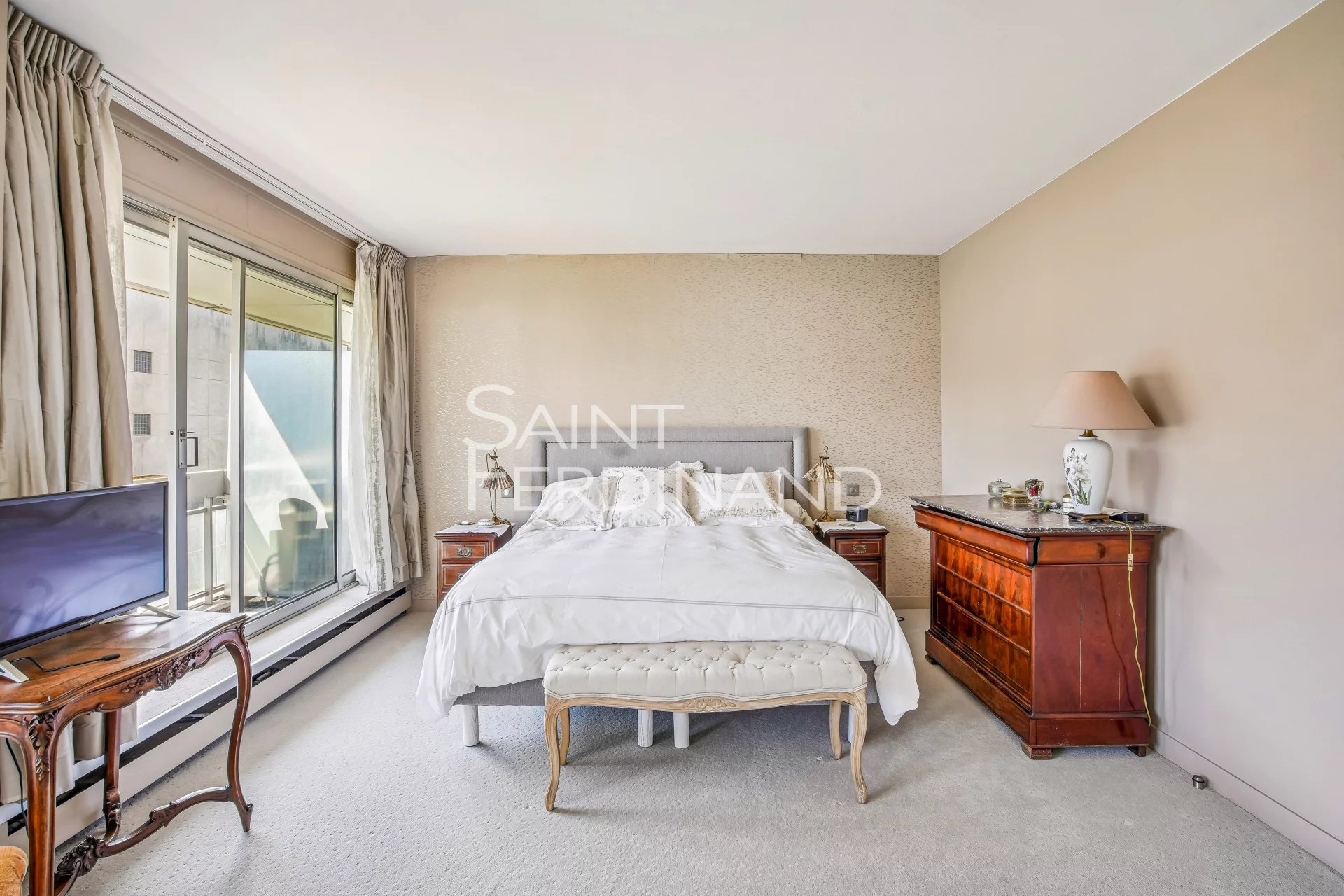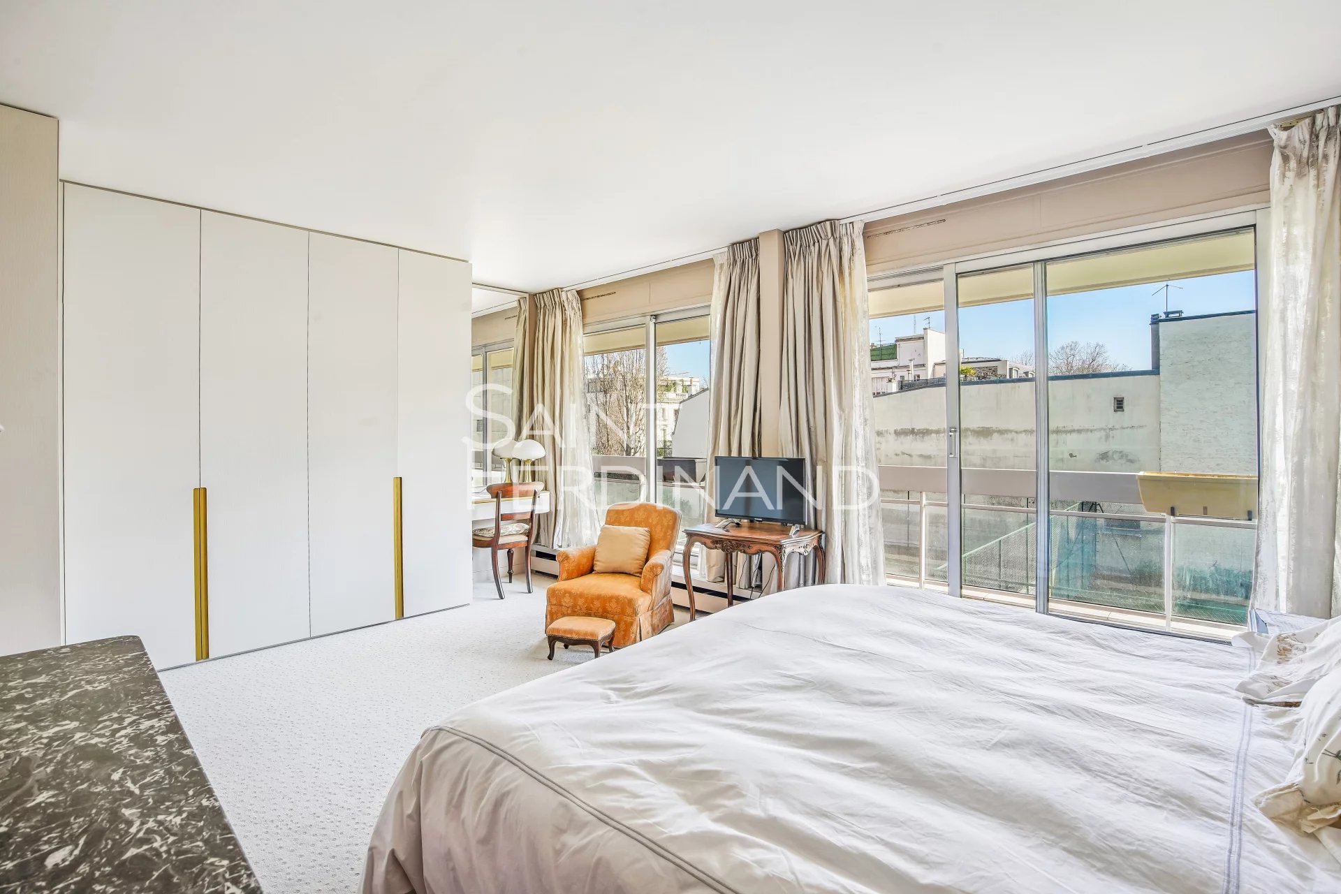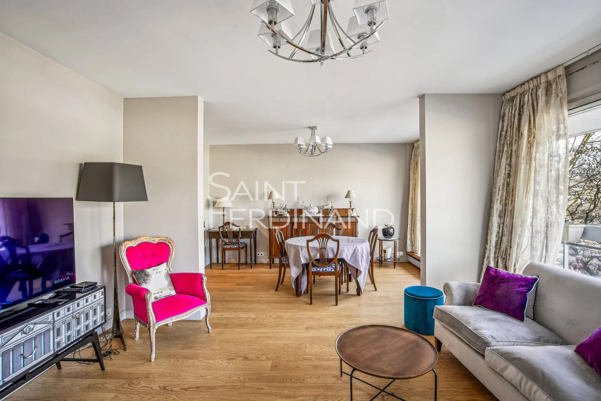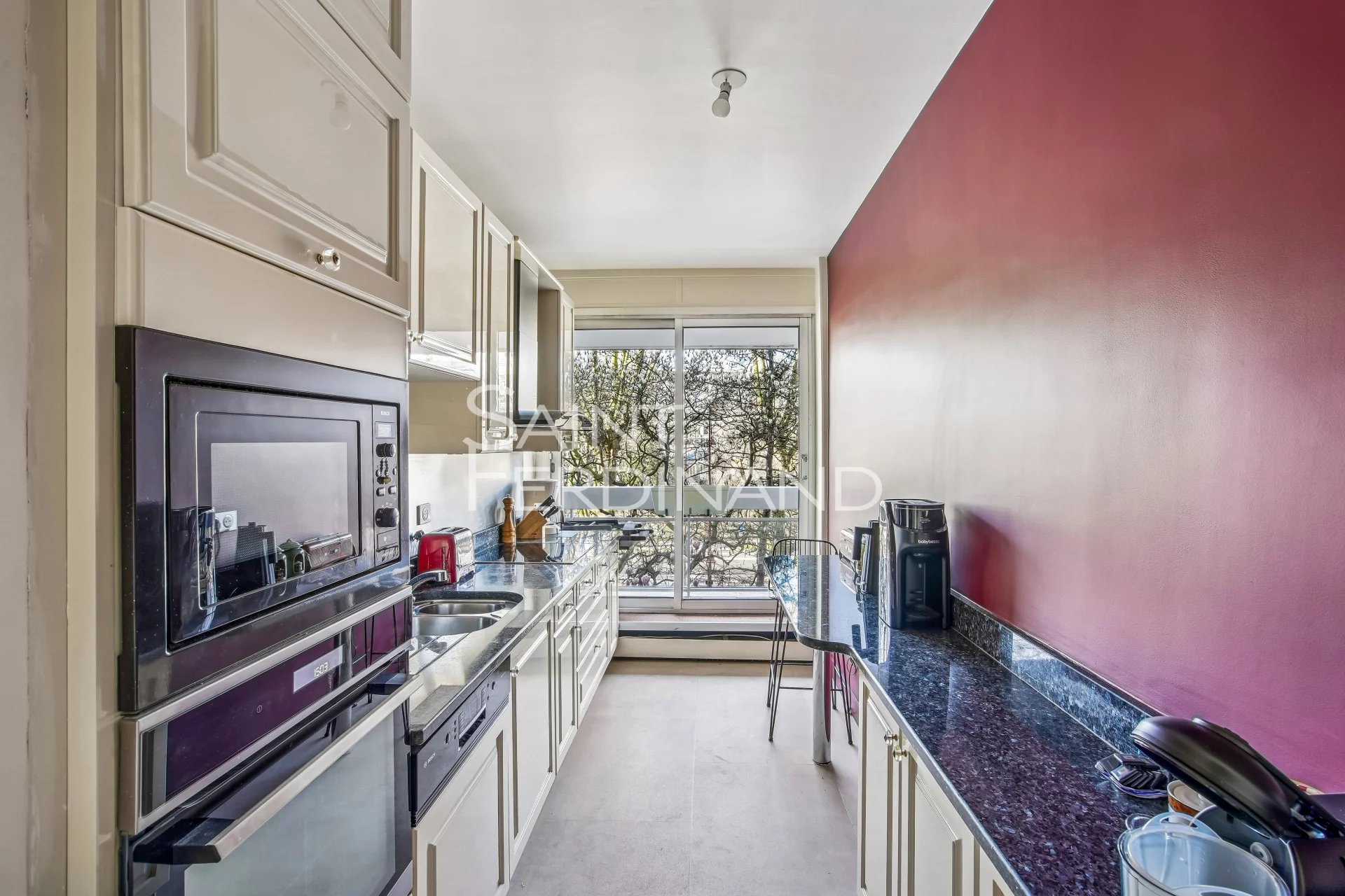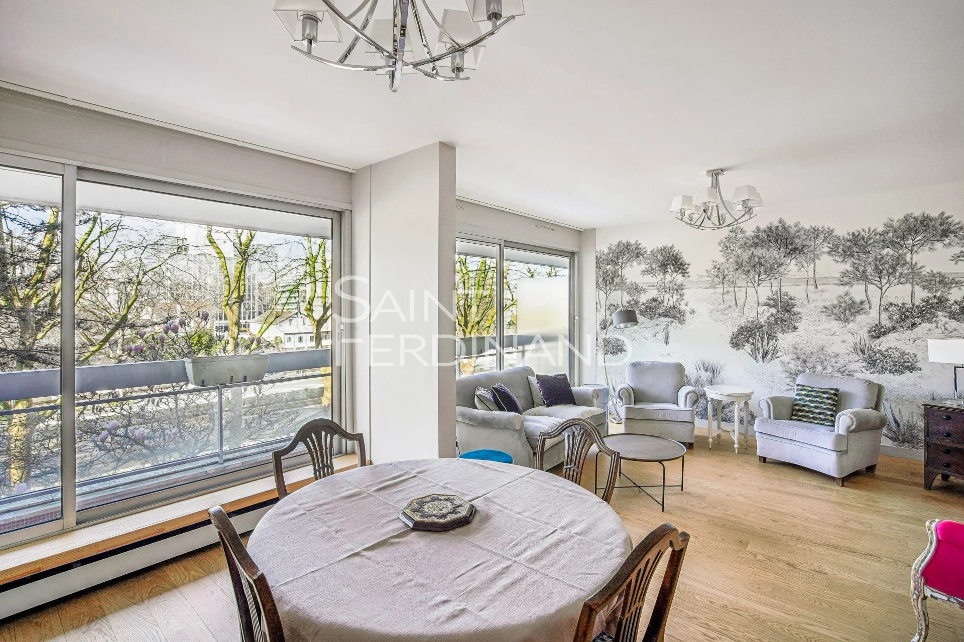 Neuilly Edouard Nortier 3 chambres Saint Ferdinand Immobilier a le plaisir de vous présente, dans un immeuble récent de bon standing au 2e étage avec ascenseur, ce bel appartement bénéficiant d’une magnifique vue dégagée et d’un très bon plan. Il se compose d’une entrée, un double séjour donnant sur un large balcon, une cuisine séparée avec arrière-cuisine, 2 chambres (3 à l’origine) dont une grande suite parentale donnant sur balcon, deux salles de douche dont une avec toilettes, WC séparé. Nombreux rangements, 2 balcons totalisant 20m2. Très bon plan, sans vis à vis, lumineux. Ce bien est complété d’une cave. Un parking en sous-sol en option.