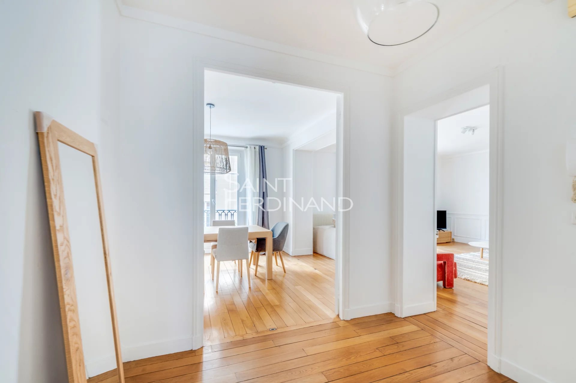 Neuilly Saint James 4 Pièces Au cœur du quartier Longchamp Village, à 2 pas du métro Pont de Neuilly, Saint Ferdinand vous propose un très bel appartement de 98m2 traversant et refait a neuf. Situé dans une rue calme au 2e étage avec ascenseur d’un immeuble de standing, aux parties communes rénovées, cet appartement comprend une entrée qui s’ouvre en étoile sur un vaste double séjour, une cuisine indépendante aménagée, 2 chambres (3e possible), une salle d’eau, toilettes séparées et de nombreux rangements. Une cave et un parking complètent ce bien. Au pied des commerces, des transports et de toutes les commodités, il est idéalement situé.