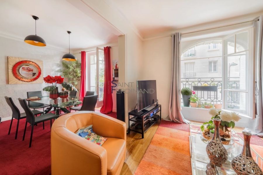 Neuilly sur Seine – Longchamp – 3 chambres 122 m² Le groupe Saint Ferdinand Immobilier vous propose au 1er étage d’un immeuble ancien de standing, un bel appartement familial traversant de 122 m² composé d’une entrée, un double séjour, une cuisine indépendante aménagée et équipée, une suite parentale avec sa salle d’eau et WC et 2 autres chambres, une salle de bains, WC séparés.