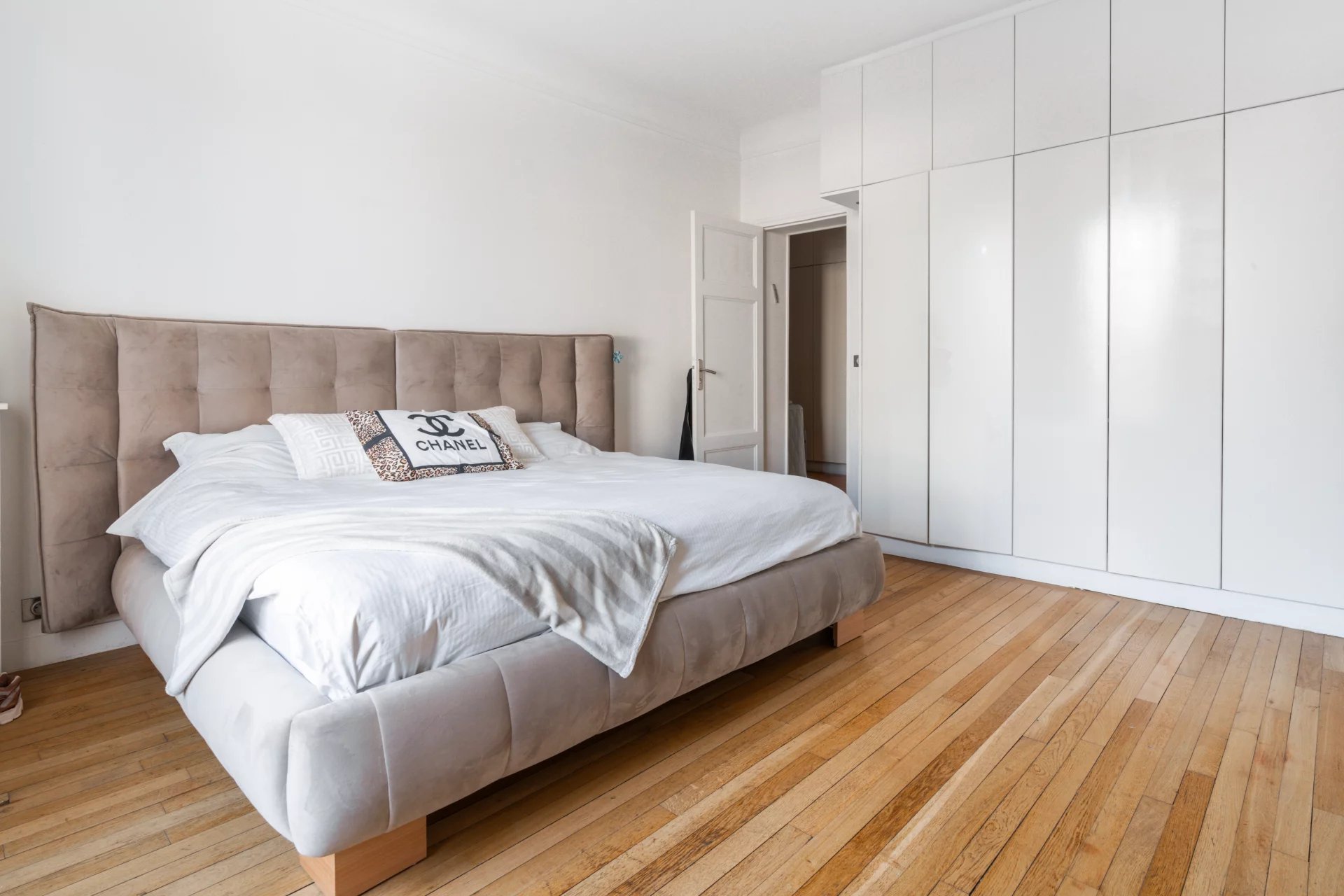 Neuilly Sur Seine / Pont de Neuilly Neuilly sur Seine Pont de Neuilly/Longchamp dans un bel immeuble ancien de standing, un appartement familial de 137m² en bon état, il est composé d’une galerie d’entrée desservant tout l’appartement, un grand séjour, trois belles chambres avec rangements dont une suite parentale avec dressing et salle d’eau wc, une salle de bains indépendante avec wc, une grande cuisine dinatoire, une buanderie, bon plan proche commerces et transports.