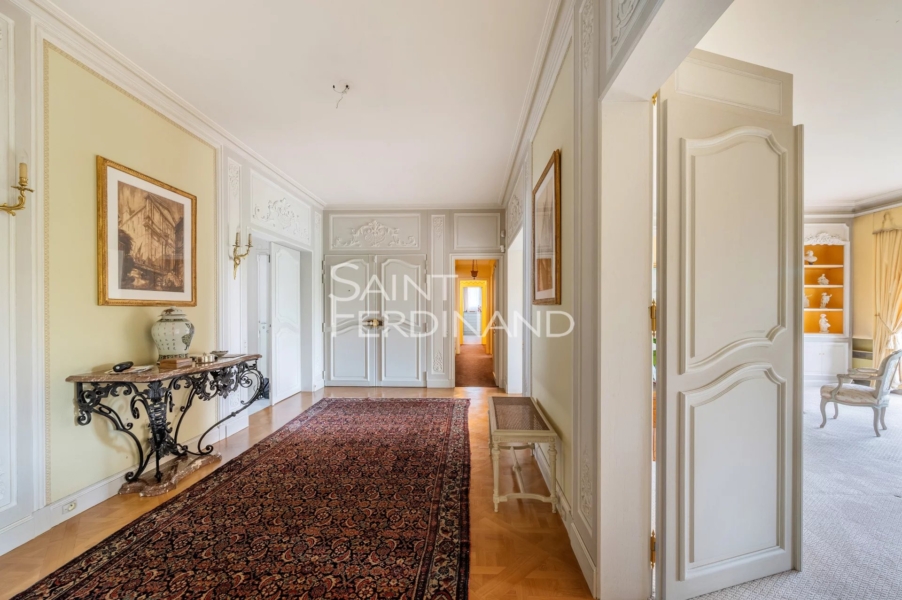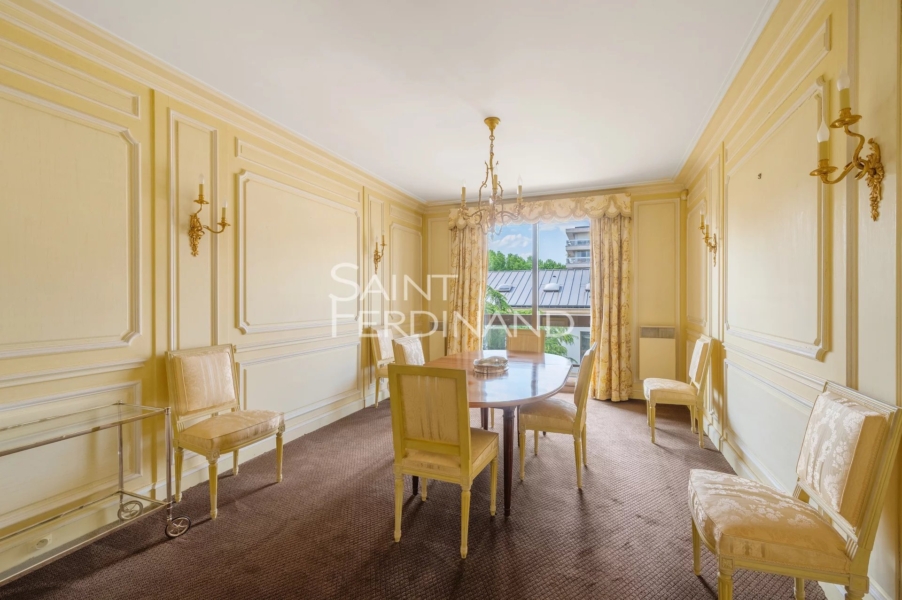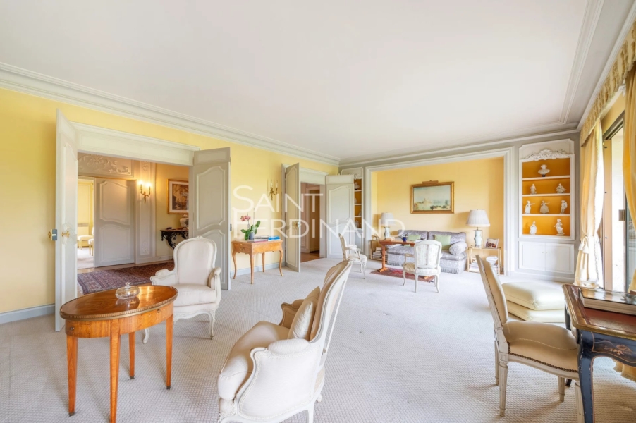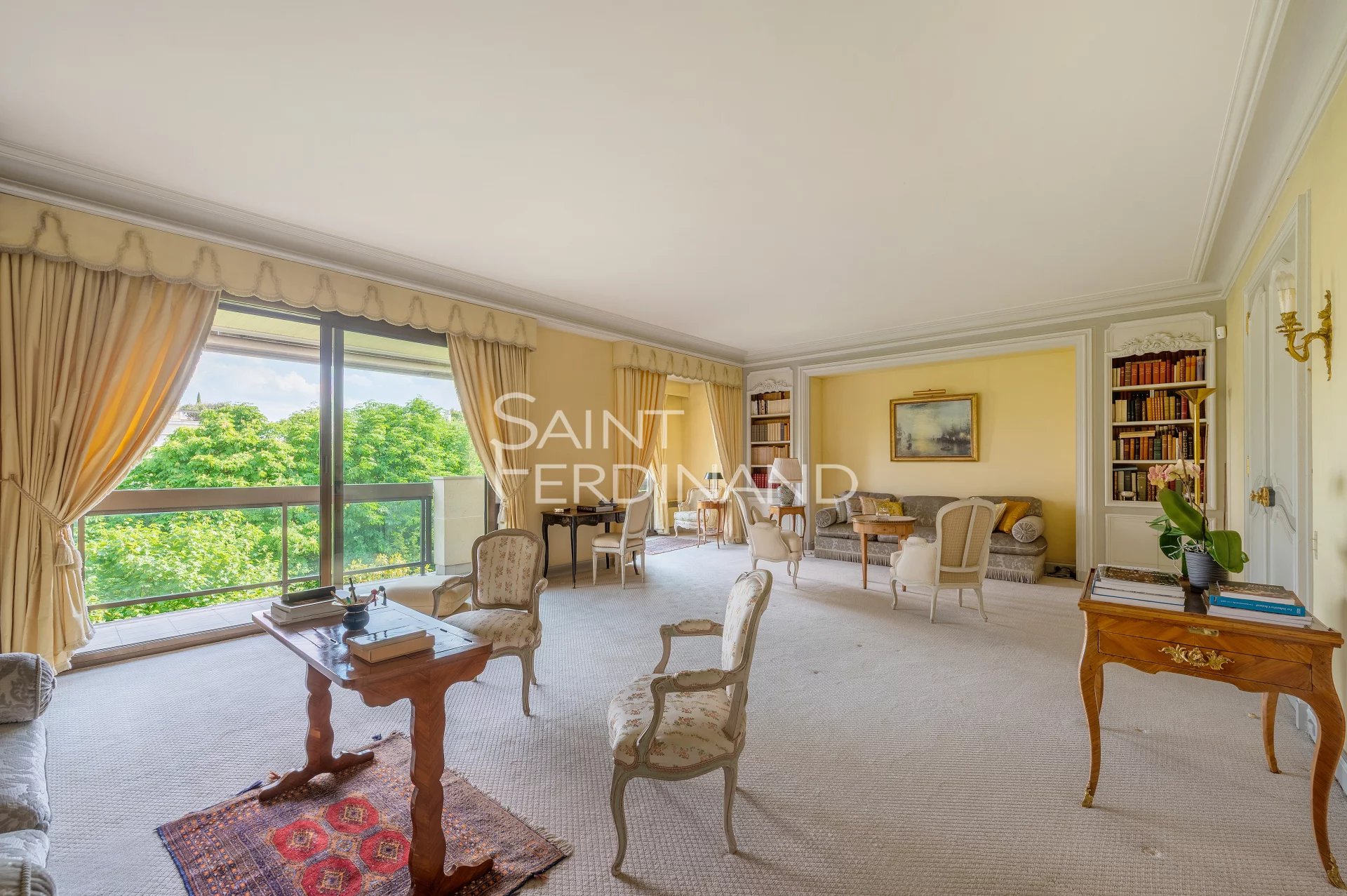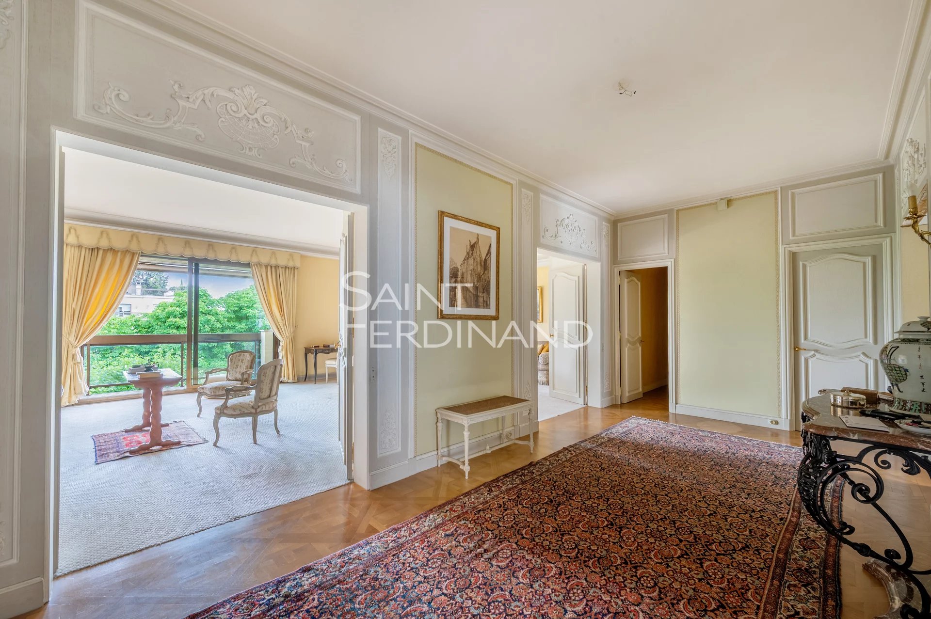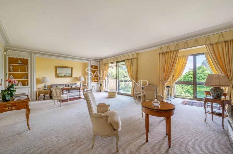 NEUILLY SUR SEINE / SAUSSAYE Saint Ferdinand Immobilier vous propose de découvrir au 4e étage d’un superbe immeuble de grand standing réalisé par un architecte de renom Lasserre, avec gardien, ce bien exceptionnel traversant, exposé plein soleil sans vis a vis, a la fois familial et de réception d’une surface de 273 m2,composé d’une galerie d’entrée, une triple réception donnant sur un balcon filant, une salle a manger avec balcon, une grande cuisine dinatoire, 5/6 chambres,3 salles de bains avec toilettes (5 possibles),2 toilettes séparés, dressing, nombreux rangements.