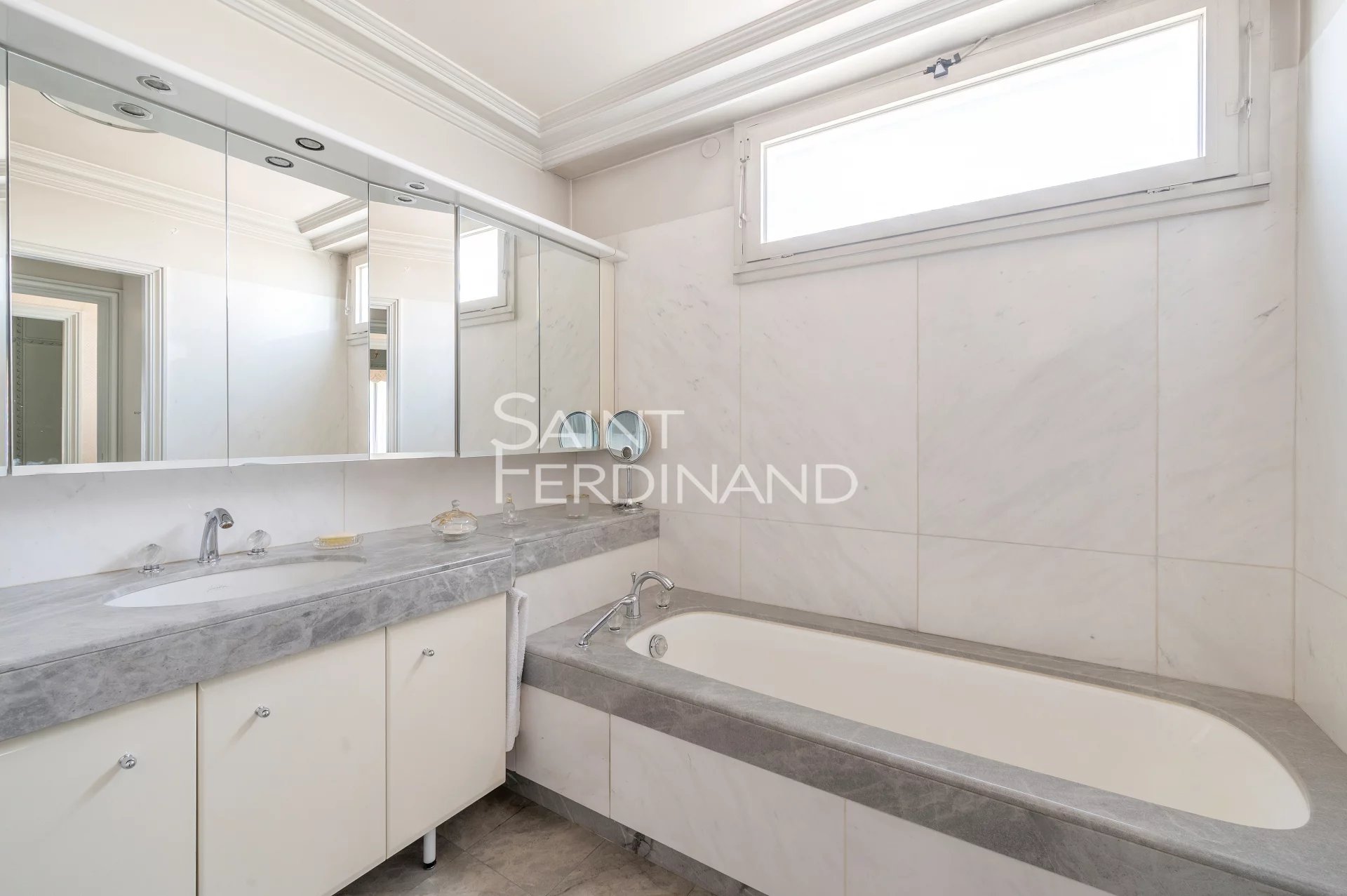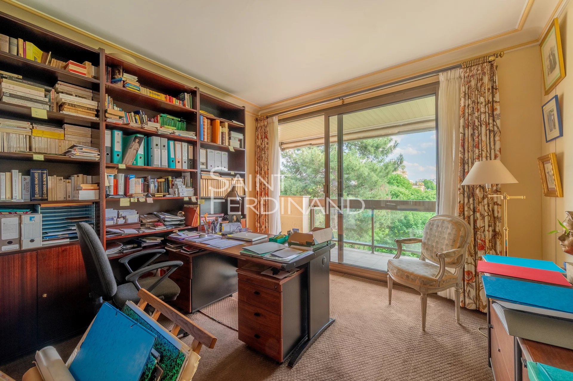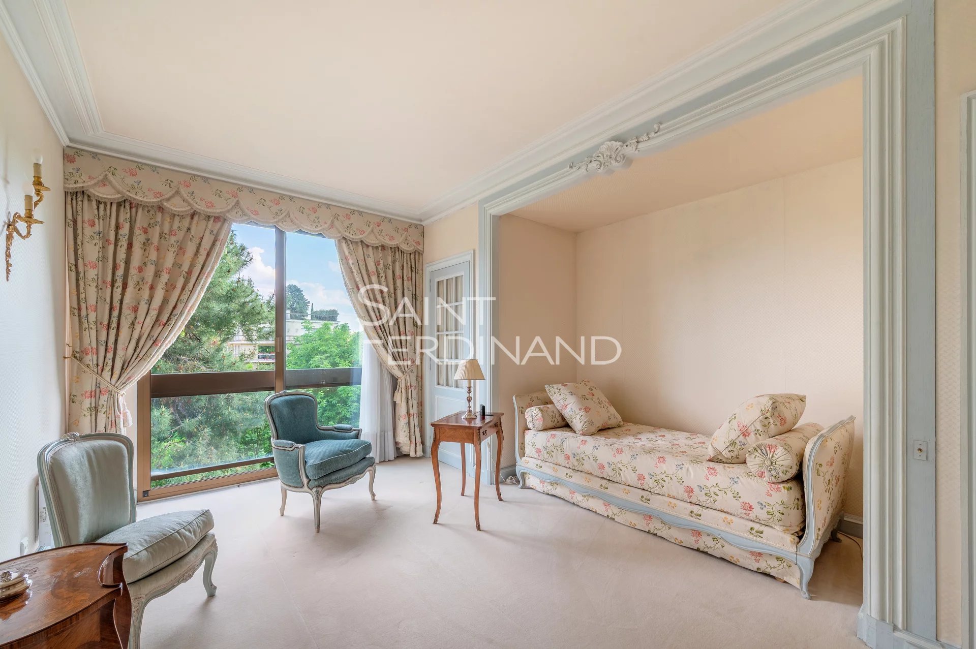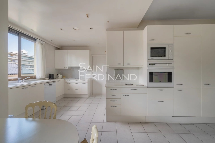 NEUILLY SUR SEINE / SAUSSAYE Saint Ferdinand Immobilier vous propose de découvrir au 4e étage d’un superbe immeuble de grand standing réalisé par un architecte de renom Lasserre, avec gardien, ce bien exceptionnel traversant, exposé plein soleil sans vis a vis, a la fois familial et de réception d’une surface de 273 m2,composé d’une galerie d’entrée, une triple réception donnant sur un balcon filant, une salle a manger avec balcon, une grande cuisine dinatoire, 5/6 chambres,3 salles de bains avec toilettes (5 possibles),2 toilettes séparés, dressing, nombreux rangements.