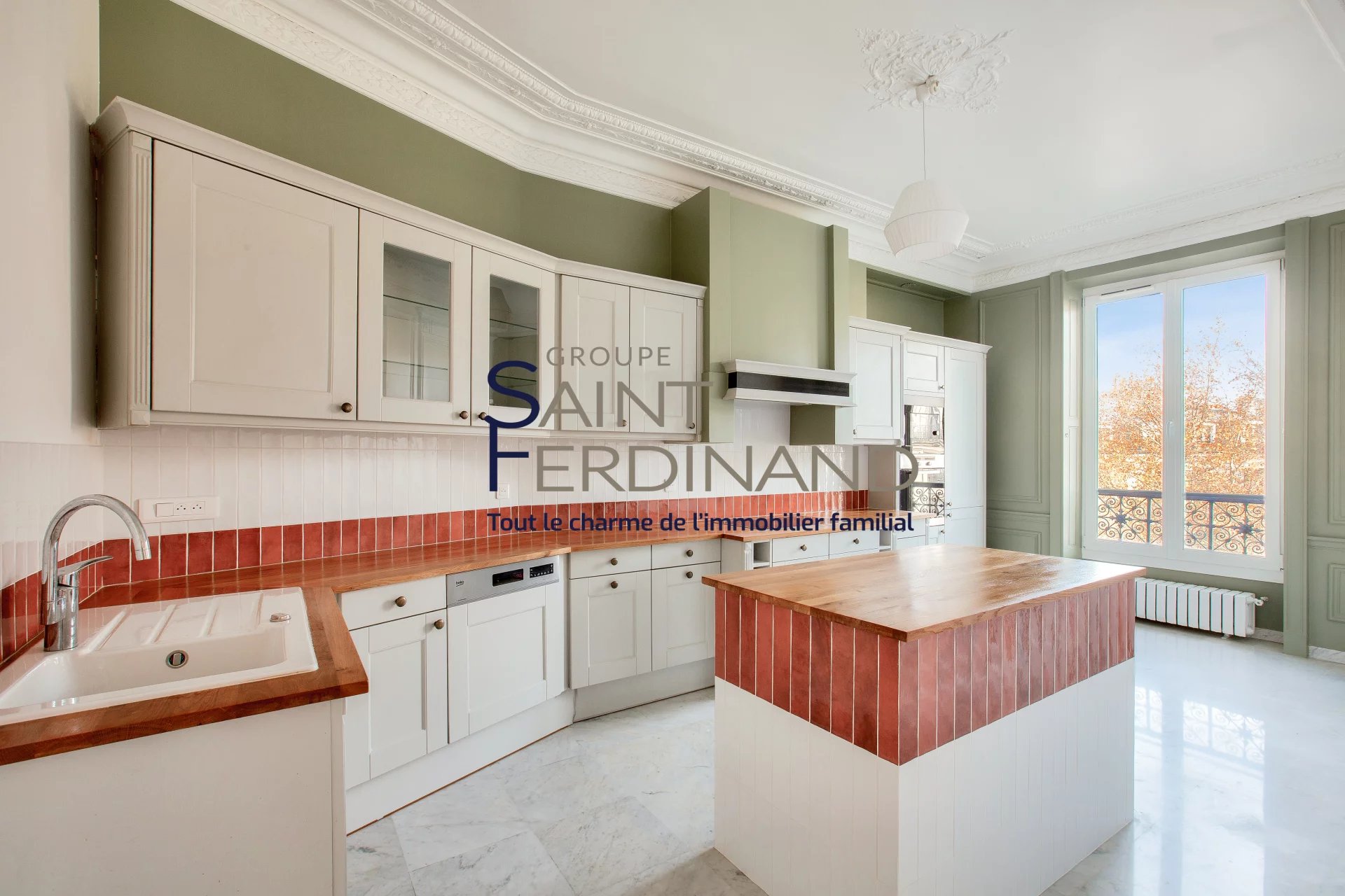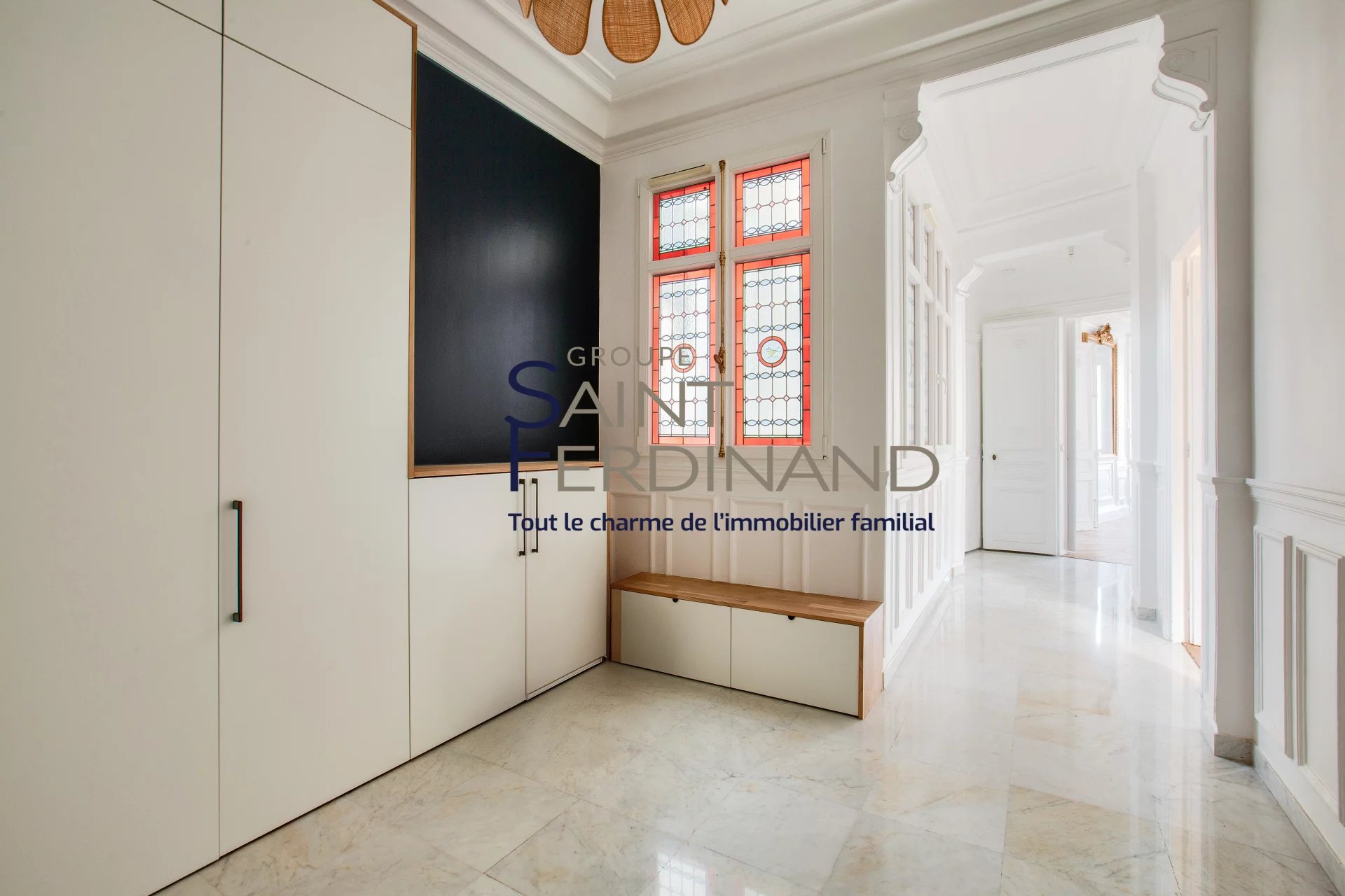 Il se compose de : une entrée spacieuse avec ses vitraux d’époque, un séjour lumineux à la vue dégagée, une cuisine équipée avec son ilot central, quatre chambres dont une parentale avec son dressing, une salle de bain et douche avec wc, une salle de douche indépendante, un wc invité et une buanderie.
