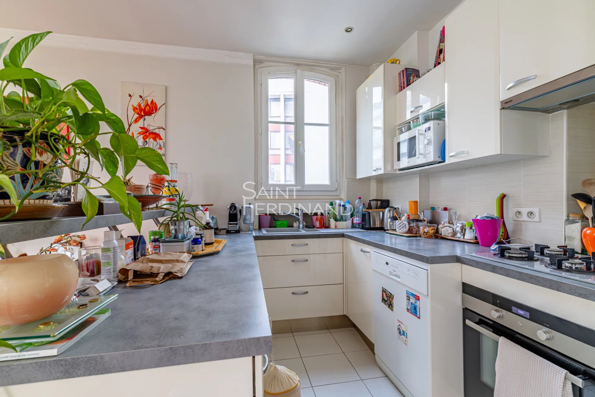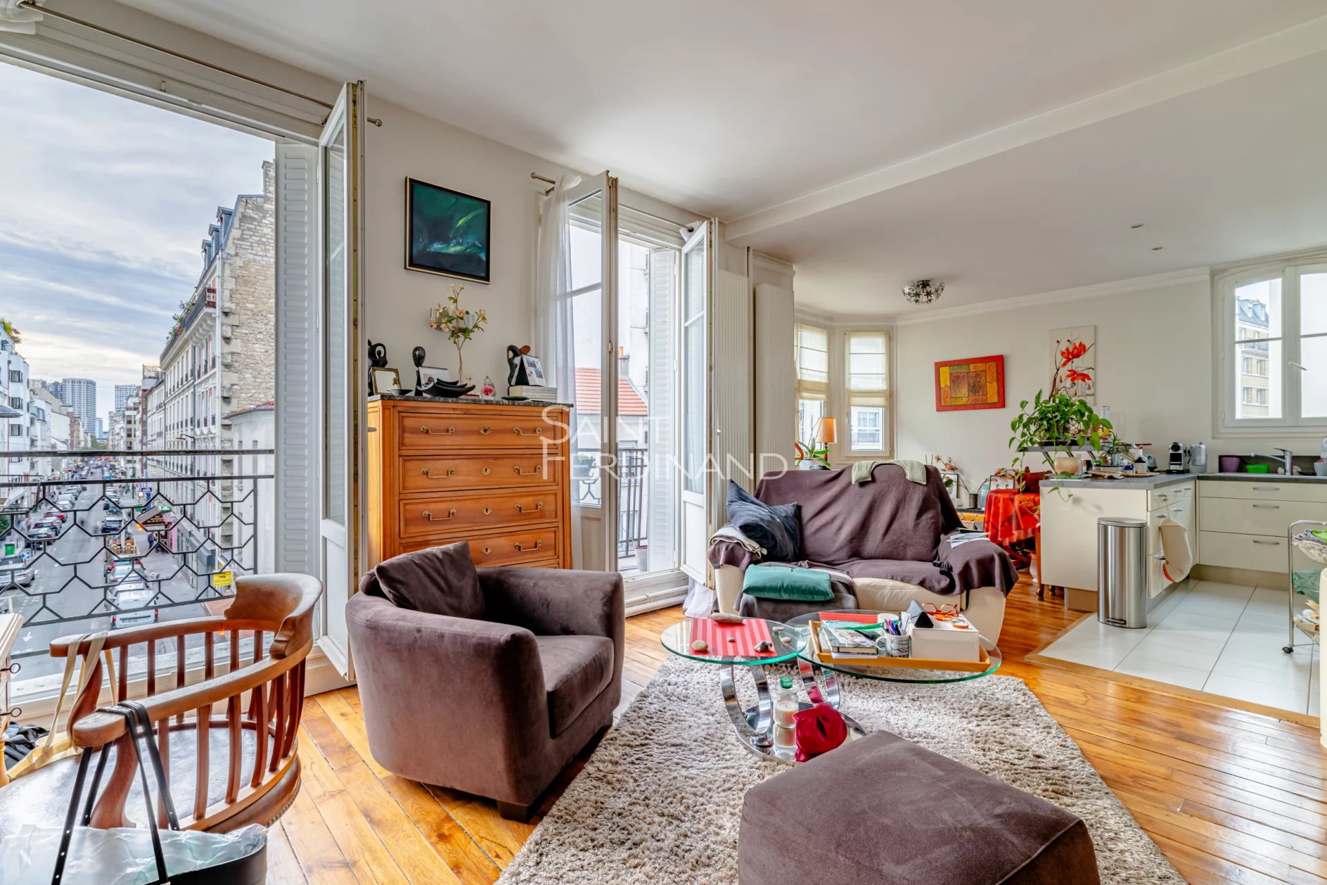 PARIS 15. COMMERCE/EMILE ZOLA – 2è ét. 2 ch. + balcons. Coup de coeur de l’agence Paris 15. Idéalement situé face à la rue du Théâtre et à la vue totalement dégagée, l’agence Saint Ferdinand vous laisse découvrir un appartement traversant de 60,83 m² au 2ème étage avec ascenseur composé de : une entrée avec rangements, un séjour ouvrant sur un balcon exposé sud-ouest, une chambre avec bow-window (actuellement salle à manger), une cuisine ouverte, une chambre avec dressing ouvrant également sur un balconnet, une salle de bains, des WC séparés.