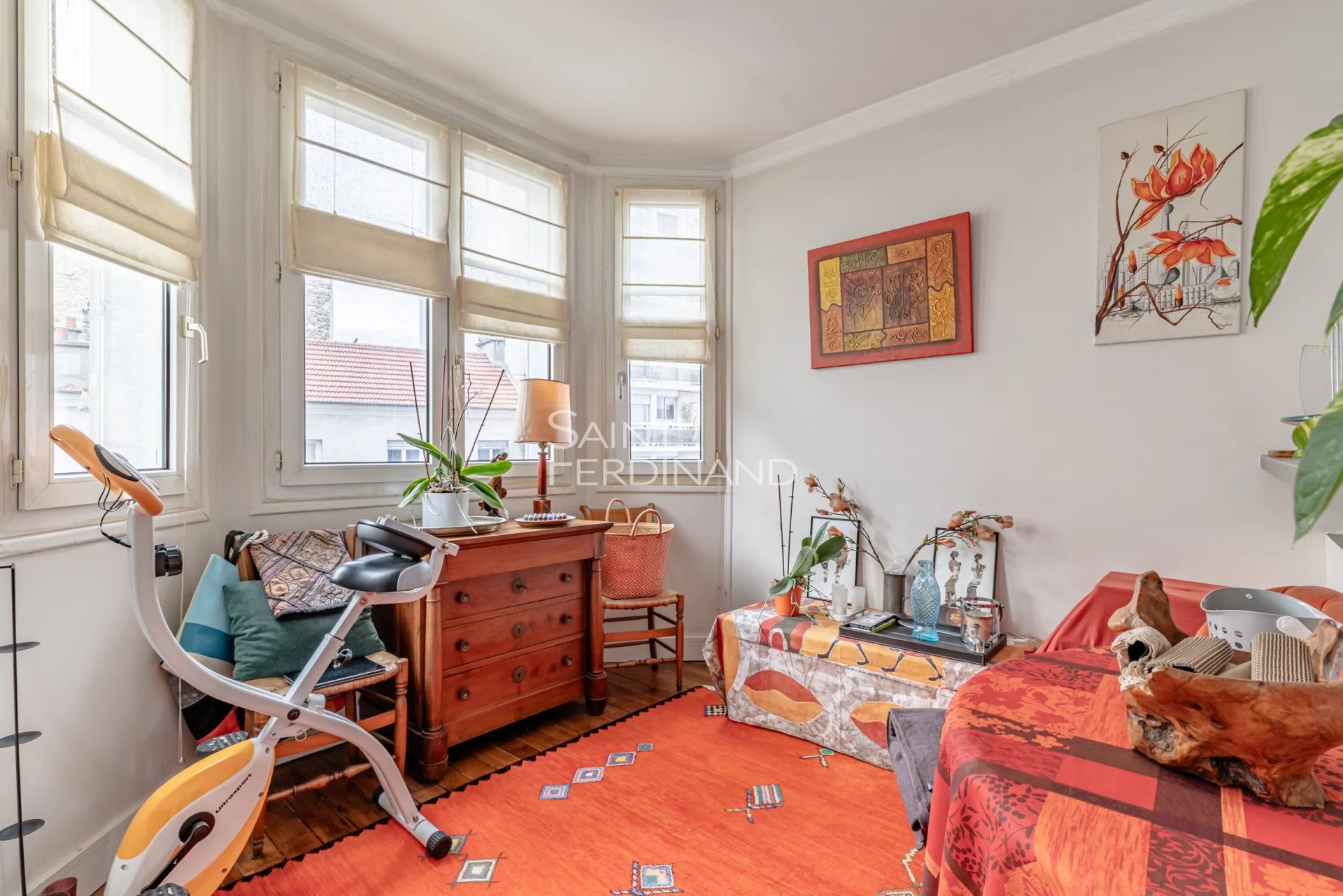 Vue dégagée, lumineux (4 fenêtres dans la pièce de vie), parquet chêne d’origine, hauteur sous plafond de 2,80 m.