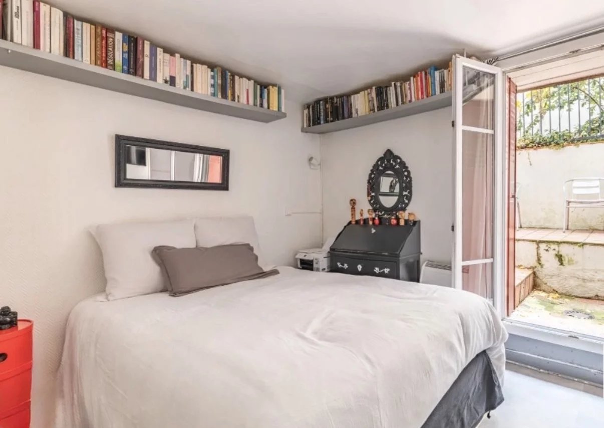 Au deuxième niveau: Une chambre de 10,75 m² au calme avec accès direct à une cour privative et une salle d’eau avec WC.