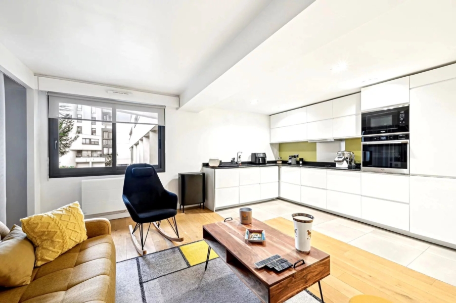 Paris 15. JAVEL ANDRE CITROEN. 2 ch. Prof. libérales autorisées. DPE C Dans une élégante résidence récente de 1995 sécurisée avec gardien, le groupe Saint Ferdinand vous propose un appartement de 74,92 m² au 1er étage avec ascenseur composé de : une entrée, un vaste séjour/salle à manger avec une cuisine américaine entièrement équipée, une chambre parentale avec dressing, une chambre d’enfant, une salle de bain avec baignoire et douche, des toilettes séparés.