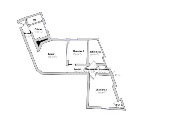 - Surface: 56.65 m²
