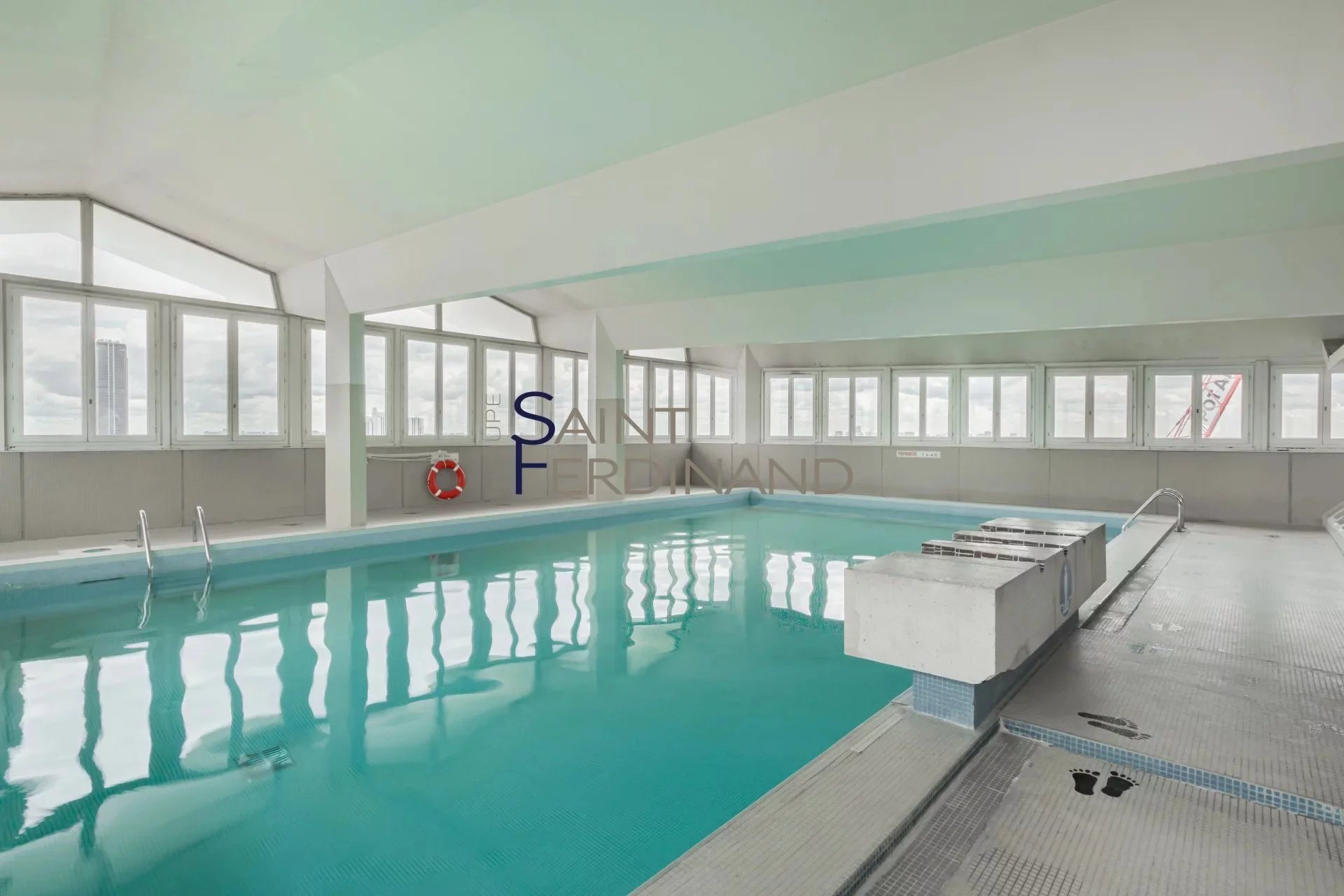 PARIS 15 – MONTPARNASSE. Studio 23è étage Dans une résidence de standing avec gardiennage 24h/24 et 7j/7 et une piscine chauffée en roof-top, l’agence Saint Ferdinand Immobilier vous présente un studio de 26 m² au 23ème étage en parfait état comprenant une entrée, un séjour avec coin cuisine de 18 m², une salle d’eau avec WC, des rangements.