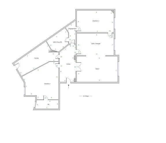Plan en étoile, parquet, hauteur sous plafond de 2,70 m, calme absolu.