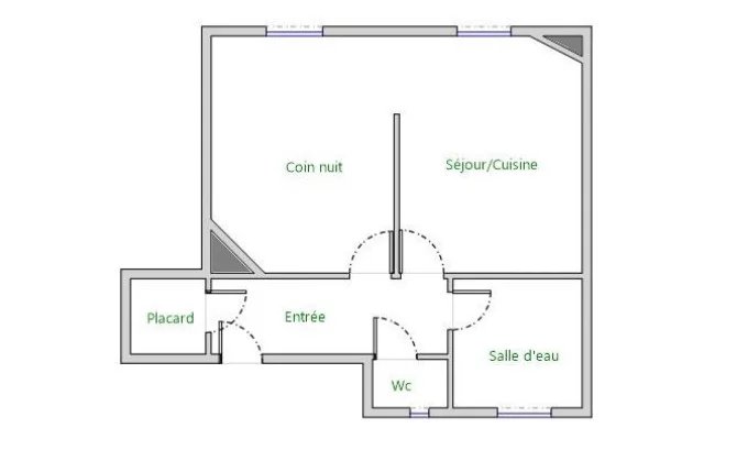 Joli plan en étoile, calme, hauteur sous plafond de de 2,67 m., fenêtres dans toutes les pièces.