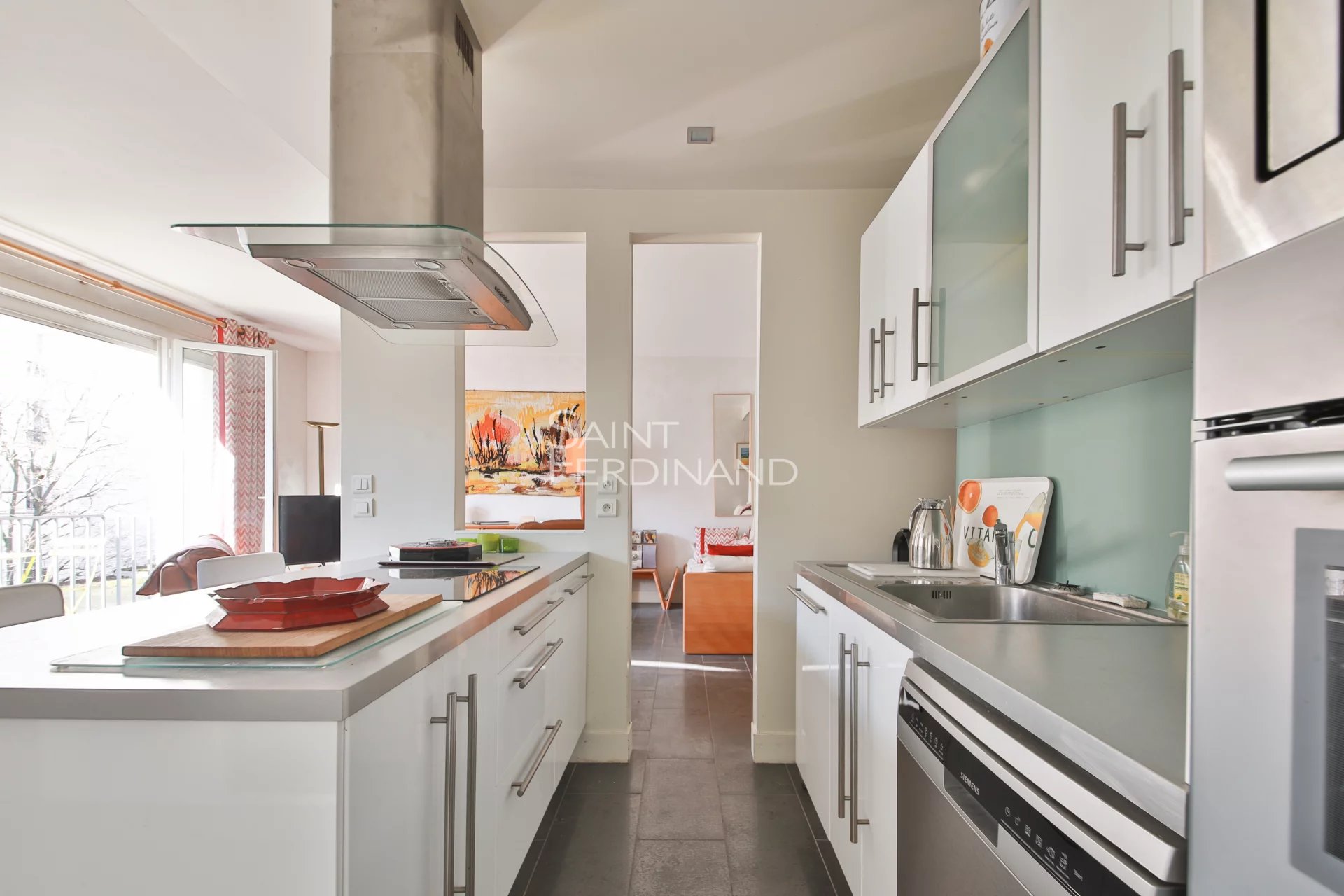 PARIS 15 – VAUGIRARD / SQUARE ADOLPHE CHERIOUX – 3 pièces – Balcon Au pied du métro Vaugirard et de la Mairie du XVe, au deuxième étage avec ascenseur dans une résidence récente de standing avec gardien, l’agence Saint Ferdinand vous présente un appartement en très bon état de 69.12m² carrez composé de : une entrée avec des rangements, une vaste pièce de vie de 35.77m² ouvrant sur une balcon avec vue dégagée de 2.8m² exposé ouest, une cuisine aménagée et équipée ouverte sur le séjour, une buanderie, une grande chambre avec dressing sur mesure, un bureau – chambre d’enfant, une salle d’eau et un WC séparé.