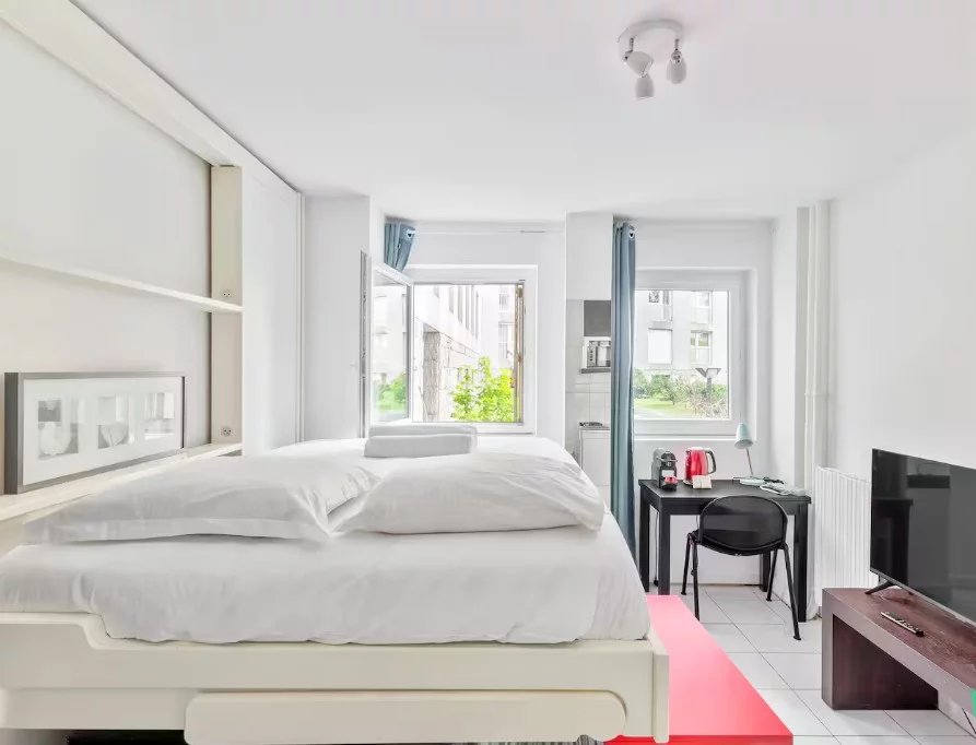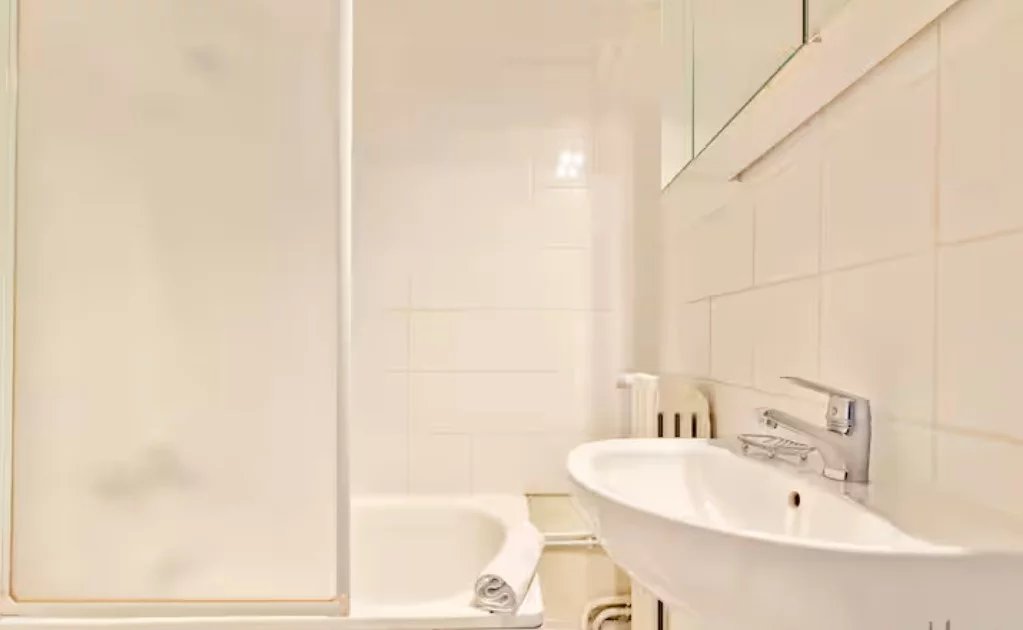 PARIS 15. VILLAGE SUISSE. Studio meublé parfait état – DPE D Dans une copropriété de grand standing sécurisée avec gardien, le groupe Saint Ferdinand Immobilier vous laisse découvrir un studio meublé de 16,60 m² Carrez au rez-de-chaussée composé de : une entrée avec rangements, une pièce de vie avec lit escamotable avec une cuisine américaine, une grande chambre, une salle de bains avec toilettes.