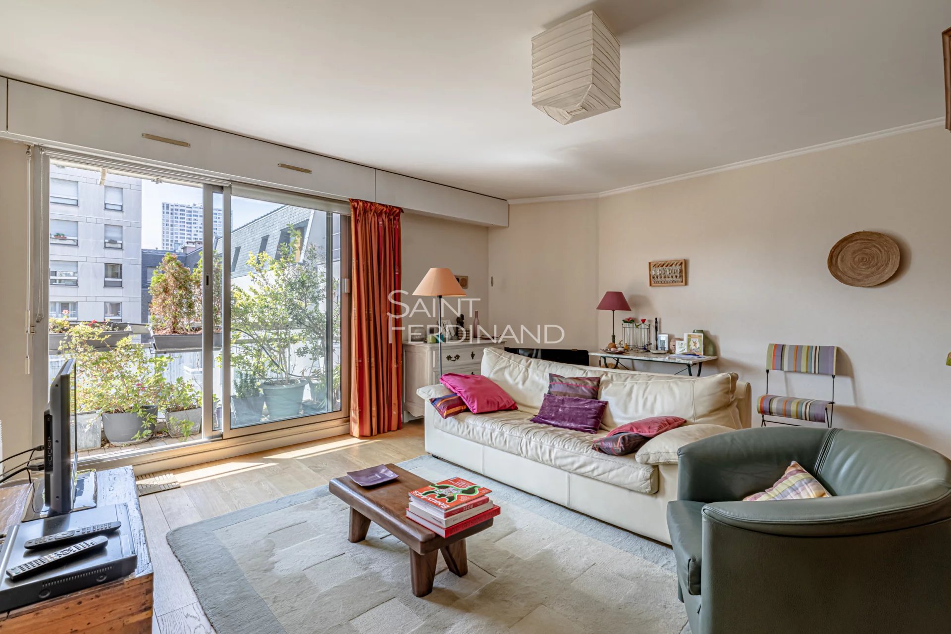 D’une superficie de 70.49m² loi carrez, il se compose d’une entrée, d’un séjour de 25m² ouvrant sur un balcon de 8m², exposé plein ouest, avec vue dégagée sur un jardin, sans aucun vis-à-vis – un véritable havre de paix en plein Paris. L’appartement dispose de deux chambres, d’une cuisine indépendante aménagée, d’un grand dressing, d’une salle de bains et de WC séparés.