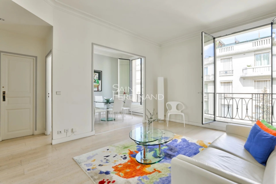 Paris 16. Auteuil/Square de Rocamadour. Meublé + balcon 3è étage asc. DPE D Dans une élégante résidence des années 30 sécurisée avec gardien, le groupe Saint Ferdinand vous laisse découvrir un appartement meublé traversant de 57,61 m² Carrez (59,01 surface totale) au 3ème étage/4 avec ascenseur composé de : une entrée avec rangements, un séjour sur balcon ouvrant sur l’hippodrome d’Auteuil, une salle à manger, une cuisine séparée, un dressing, une chambre, une salle de bains, des WC séparés.