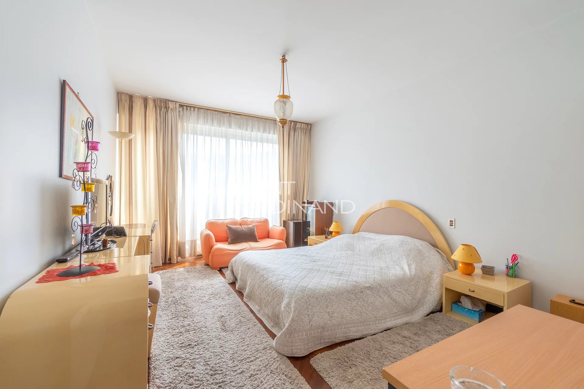 Accessible par ascenseur, ce bien rare se compose au premier niveau : d’une entrée, d’un vaste double séjour avec salle à manger offrant une vue dégagée, d’une cuisine séparée et équipée, ainsi que d’un toilette invités.