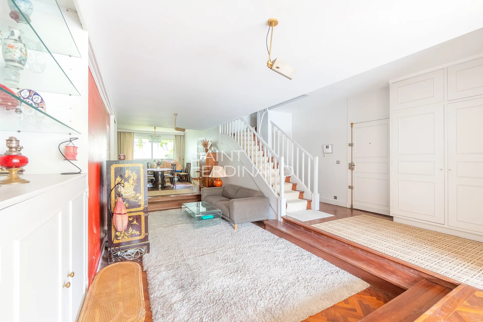 Paris 16 ème. Secteur Place des Etats-Unis. Duplex familial de 214,53 m² Situé dans un bel immeuble sécurisé, à deux pas de la Place des États-Unis, des Champs Elysées et du Trocadéro, l’agence Saint Ferdinand vous propose ce spacieux duplex traversant d’une surface de 214,53 m² (loi Carrez).