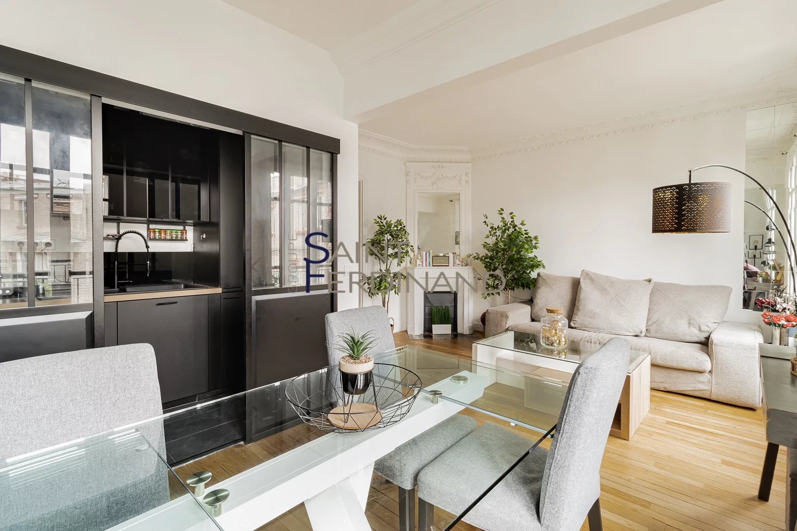 Paris 16 – Exclusivité – Village d’Auteuil – 59m²/2 chambres- Balcon Le groupe Saint Ferdinand immobilier vous propose un appartement rénové par architecte de 59 m² avec balcon au 6ème étage avec ascenseur d’un magnifique immeuble haussmannien situé dans une voie privée au cœur du Village d’Auteuil. Il se compose d’un double séjour avec cuisine ouverte, deux chambres, une salle d’eau avec WC et de nombreux rangements. Tout le charme de l’ancien : parquet, moulures, cheminées, belle HSP. Une cave complète ce bien. Au calme absolu, cet appartement bénéficie d’une vue dégagée. Local vélos. Copropriété de 15 lots. Montant des charges prévisionnelles annuelles : 3.600 euros. Estimation des coûts annuels d’énergie entre Estimation des coûts annuels d’énergie entre entre 1 890 euros et 2 600euros. Honoraires d’agence forfaitaires de 30.000euros inclus.