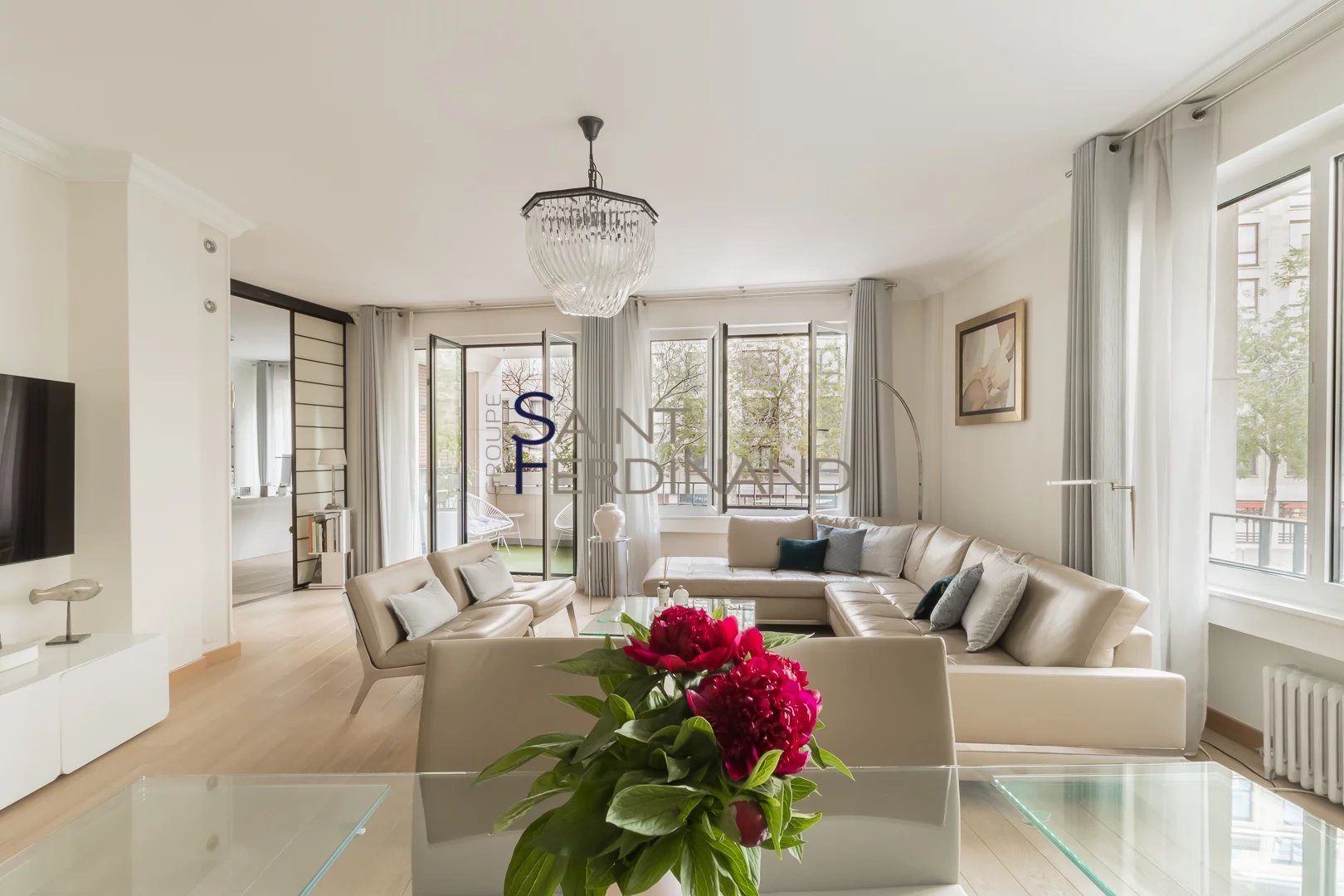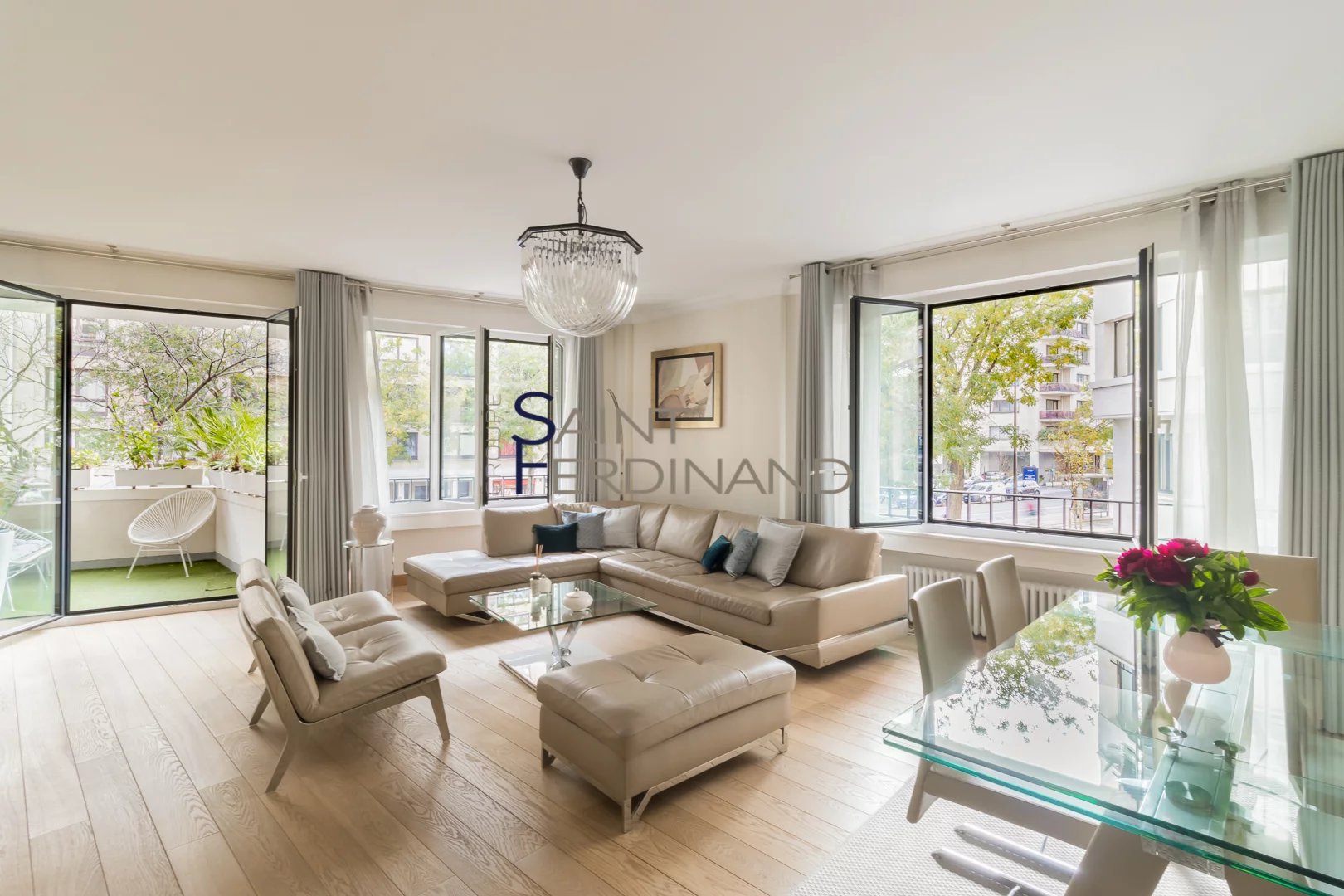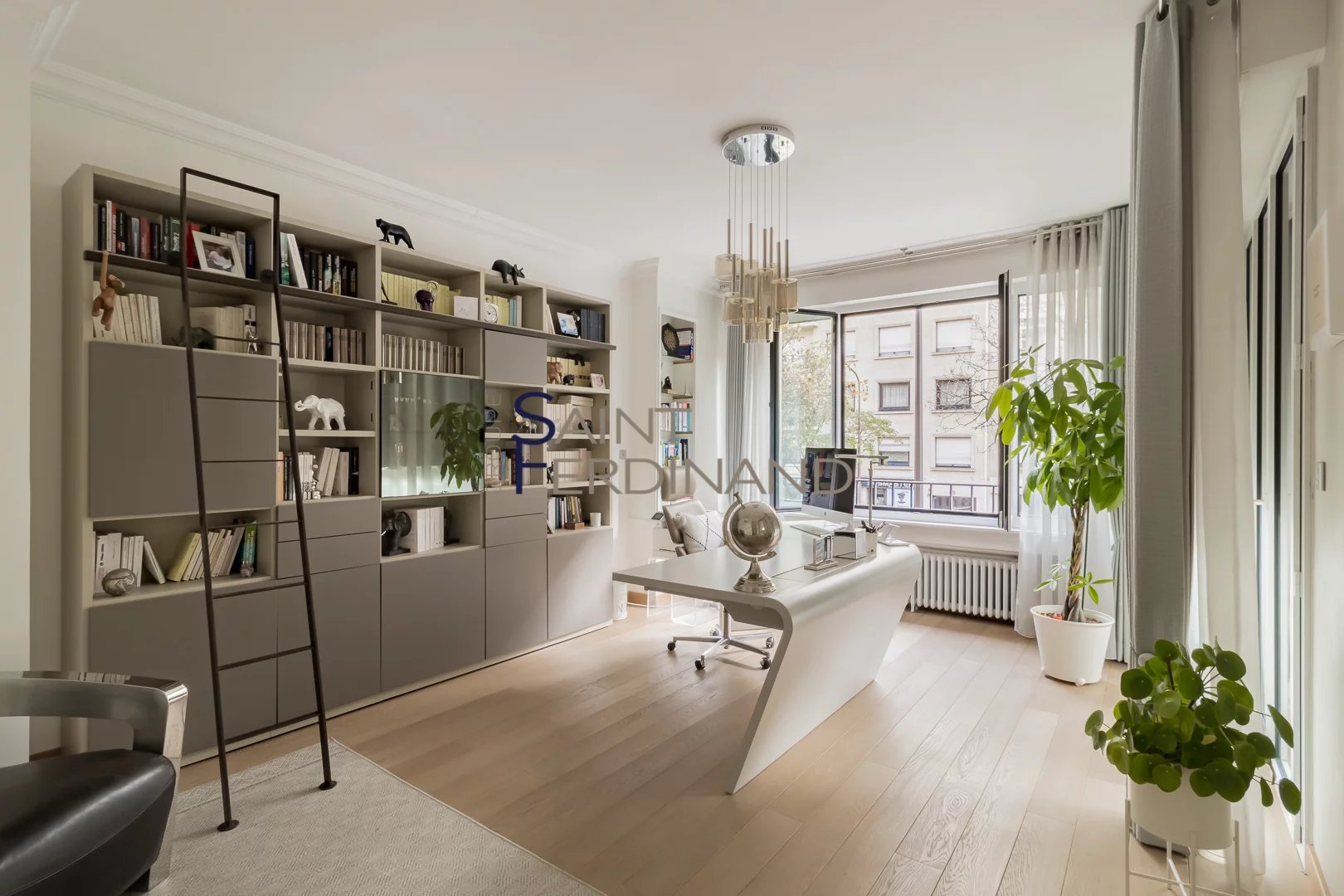 Paris 16 – Trocadéro – Paul Doumer – Magnifique 165 m² + terrasse Saint Ferdinand Immobilier vous propose ce superbe appartement de 165 m², situé au 1er étage surélevé avec ascenseur d’un immeuble de standing, gardiens 24H/24. Ce bien se compose d’une galerie d’entrée, un double séjour donnant sur une terrasse de 7m², une vaste cuisine dinatoire équipée, 2 chambres dont une avec sa salle de bains et WC, 1 grand bureau ou 3ème chambre, un dressing, 2 salles d’eau, 1 WC indépendant et de nombreux rangements. Une cave complète ce bien. Emplacement rare et privilégié, au cœur de l’un des quartiers les plus prisés de Paris, proche du Trocadéro.