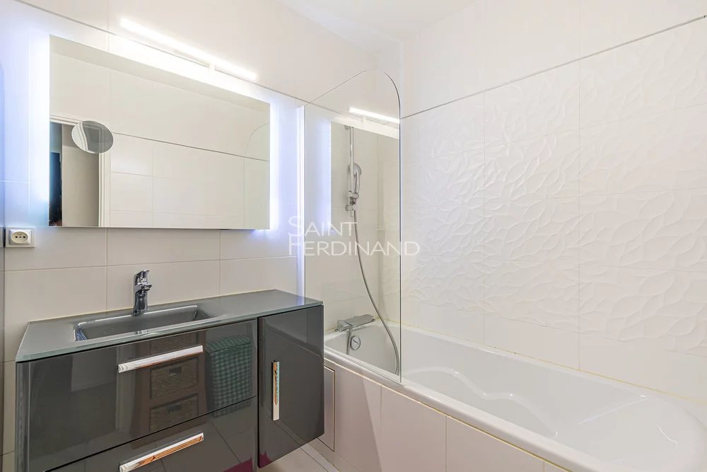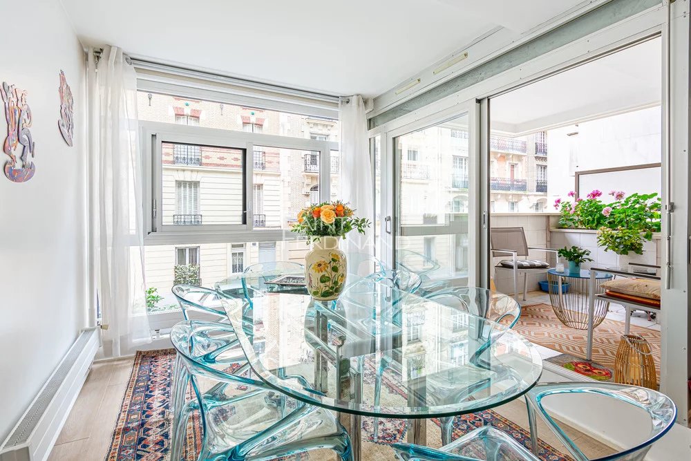 Paris 16 – Village d’Auteuil – 2 chambres 77 m² + balcon Le groupe Saint Ferdinand vous propose, au 1er étage avec ascenseur d’un immeuble semi-récent de bon standing avec gardien, cet appartement traversant de 77 m² composé d’une entrée, un vaste séjour donnant sur une jolie terrasse de 5m², une cuisine équipée indépendante pouvant s’ouvrir sur le séjour, 2 chambres donnant sur jardin, une salle de bains, WC séparés. Nombreux rangements.