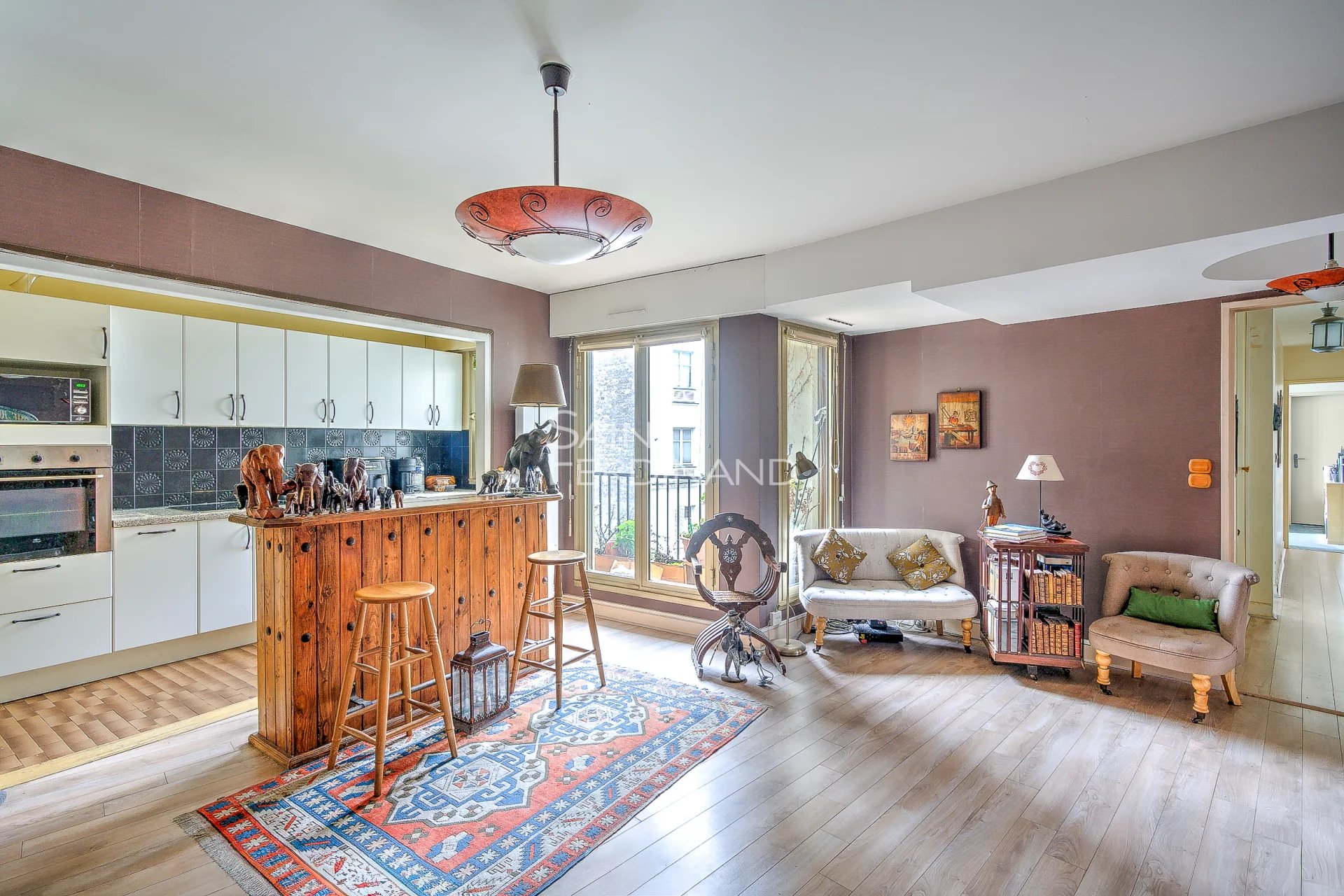 Paris 16ème Passy Jardin du Ranelagh Saint Ferdinand vous propose en exclusivité, un appartement dans un quartier hyper recherché. Il se situe dans une rue résidentiel et calme, au 4 ème étage avec ascenseur. Il est composé d’une entrée, d’un séjour avec un cuisine US ouvrant sur un balcon, de deux chambres avec chacune sa salle de douche et ses toilettes, une buanderie et des toilettes indépendants.Une immence cave de 25 m²complète ce bien.