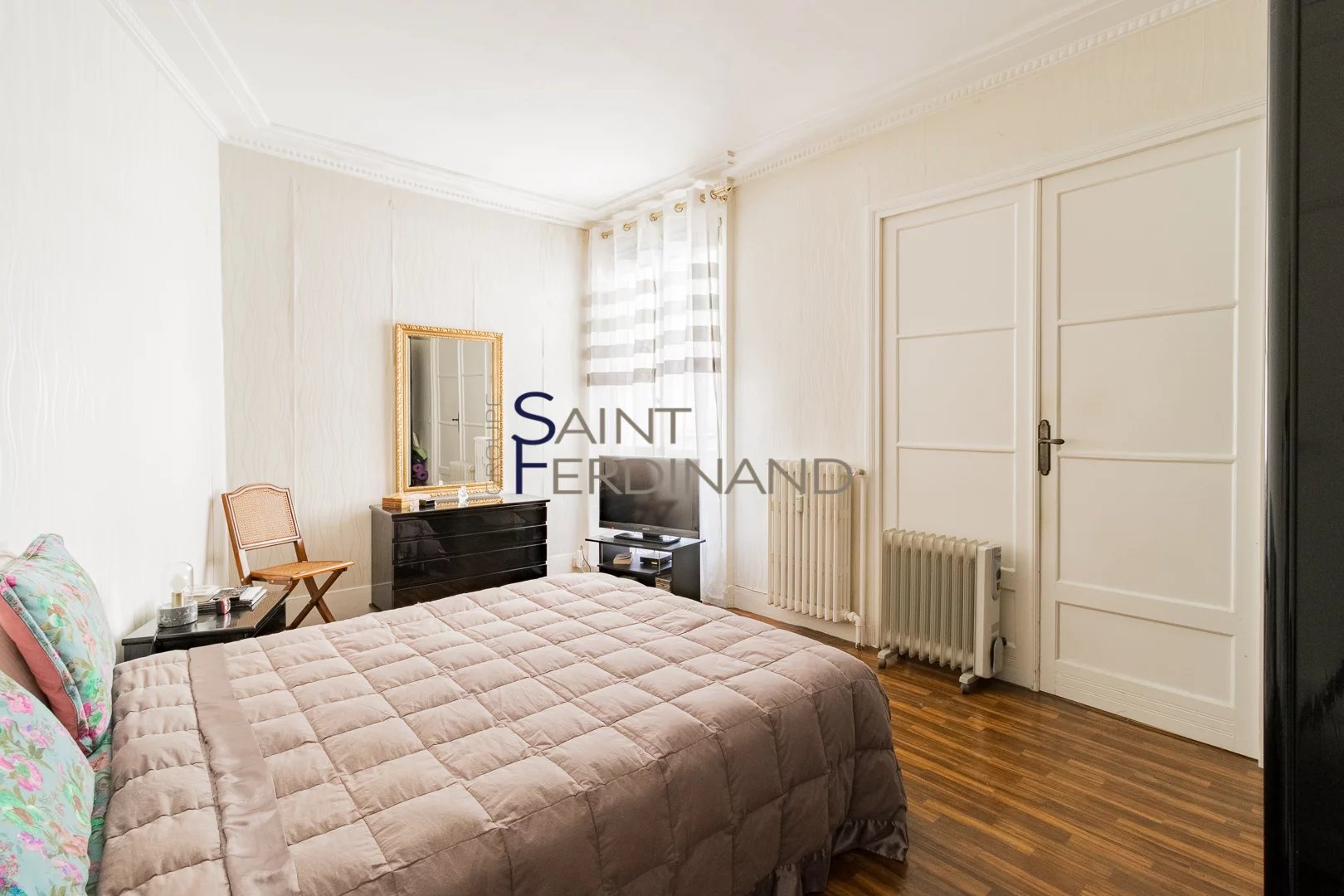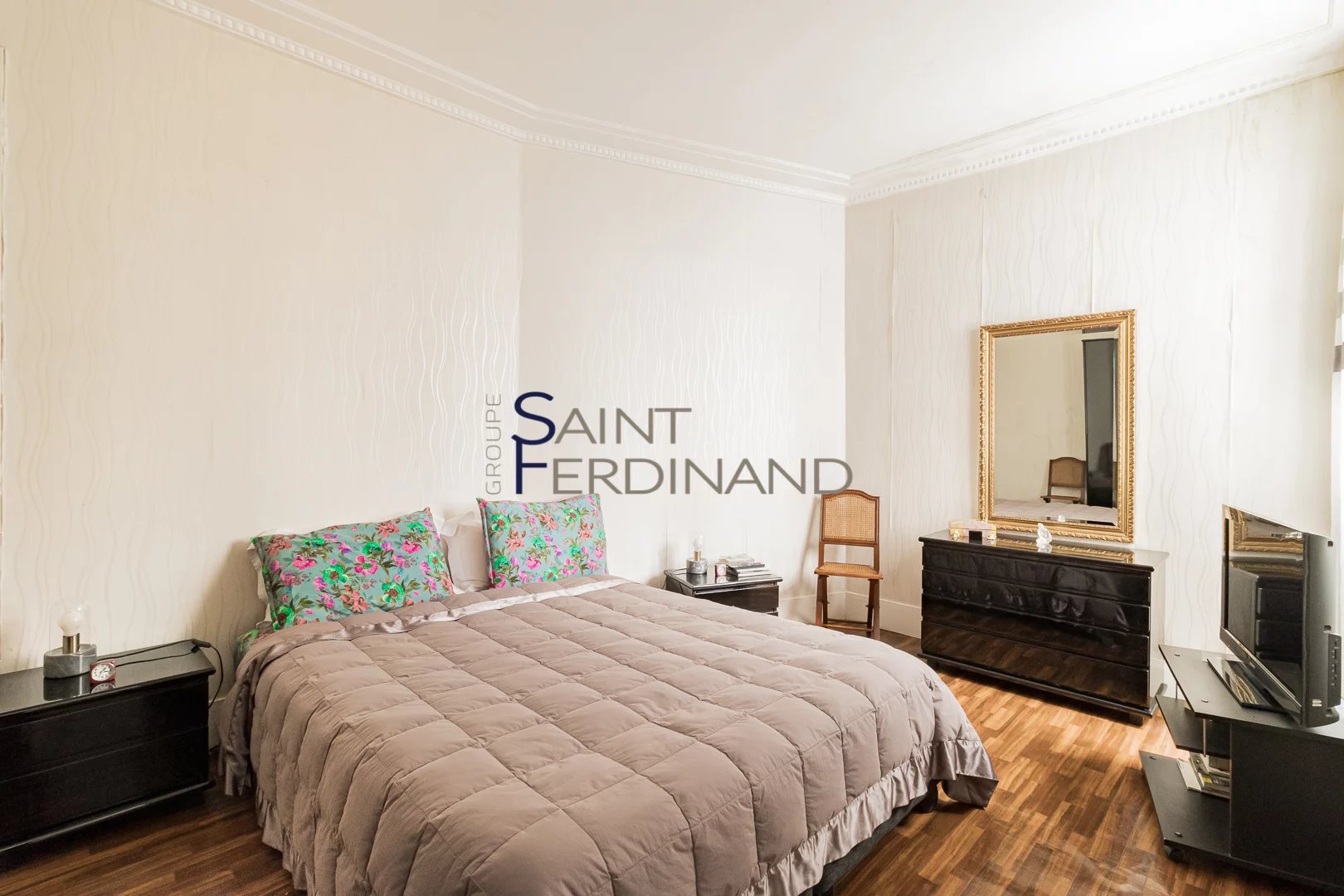 Très belle hauteur sous plafond ainsi que tout le charme de l’ancien avec parquet, moulures et cheminées.
