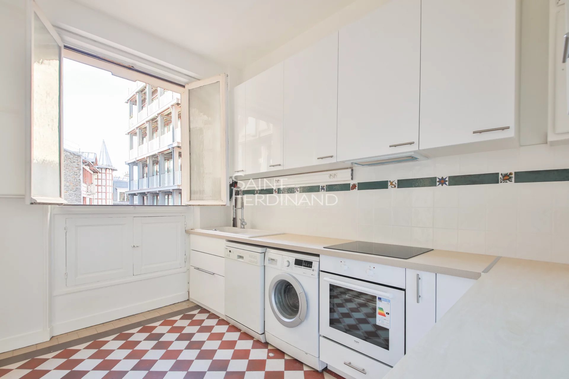 Entièrement sur cour , clair et calme réunissant tout le charme de l’ancien (parquet,moulures cheminées) ce bien est loué avec 3 armoires normandes .