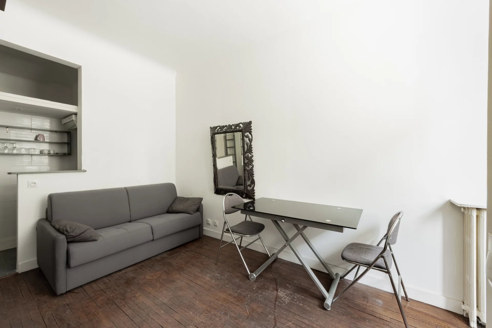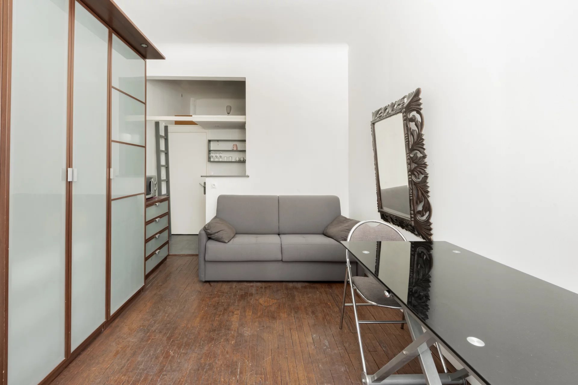 Ce bien est composé d’une entrée, Une belle pièce de vie LUMINEUSE sans vis-à-vis , un coin cuisine ,une mezzanine ,une salle de douche avec WC.